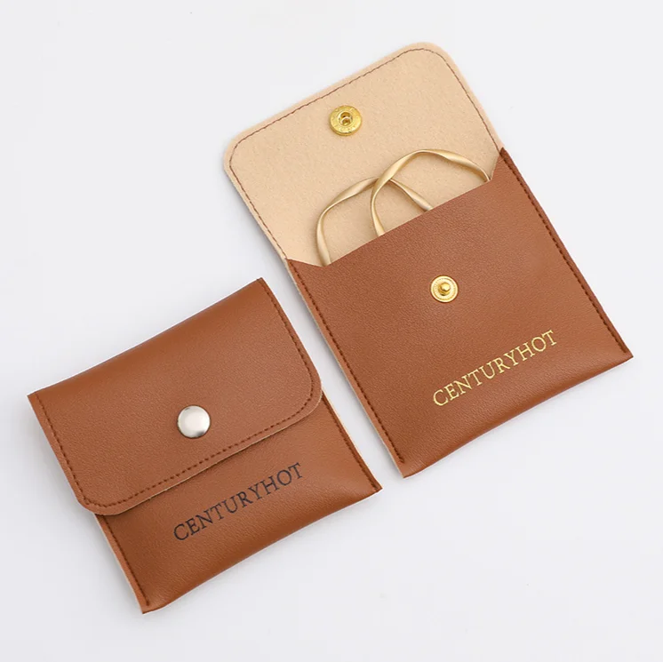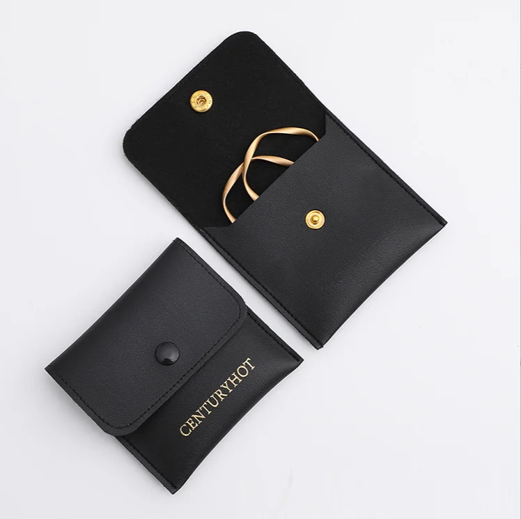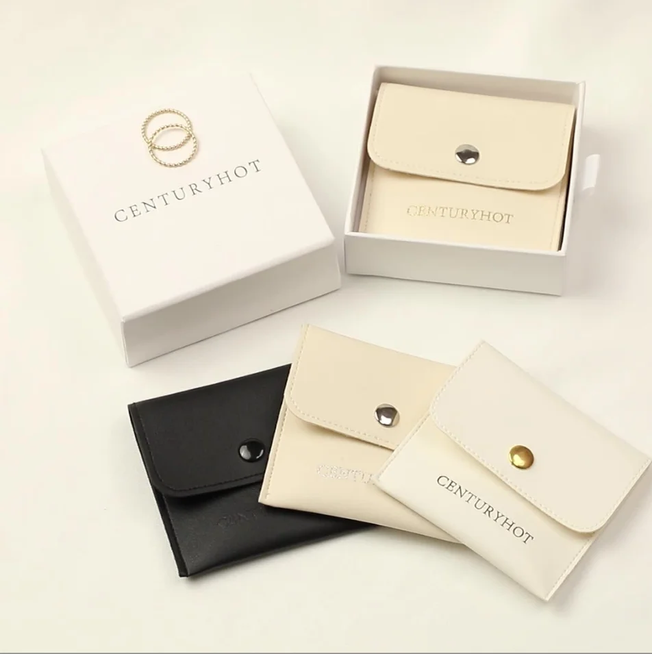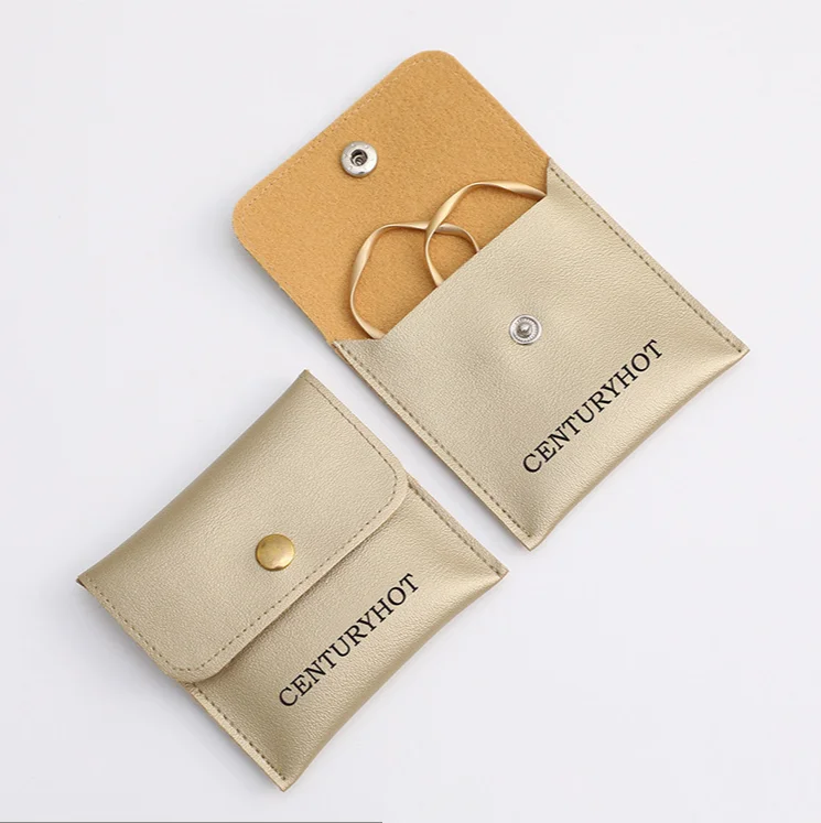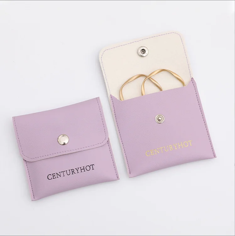Boyang Custom Logo Jewellery Package Microfiber Snap Button Pouch Bags Jewelry Earrings Necklace Pouch Gift Bag With Insert Card