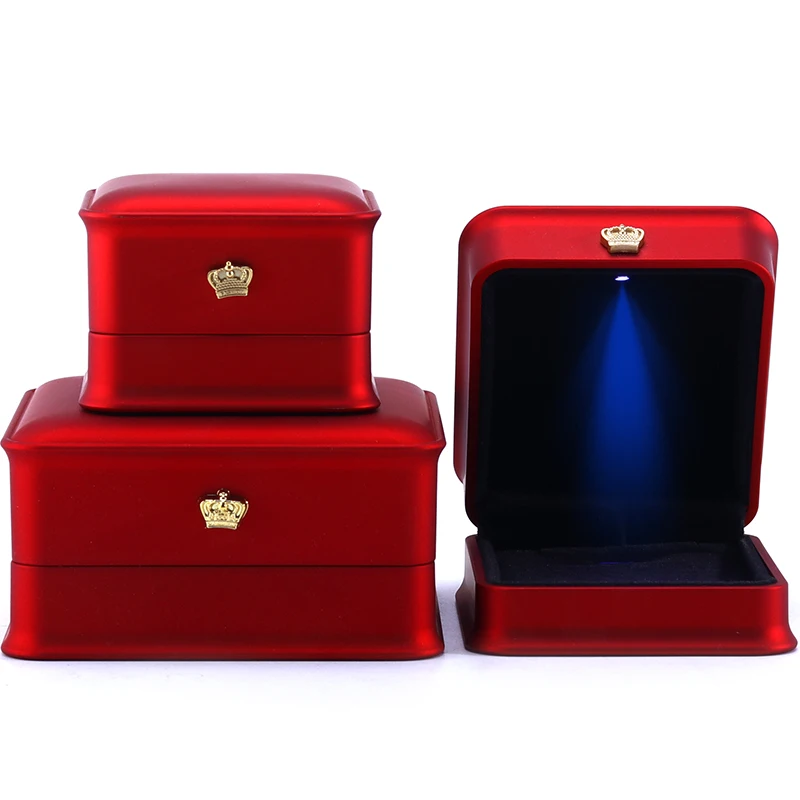 2024 Luxury Crown Rectangle Jewelry Packaging Box LED Light Bracelet Necklace Ring Box Red Crown Jewel Case