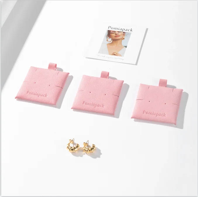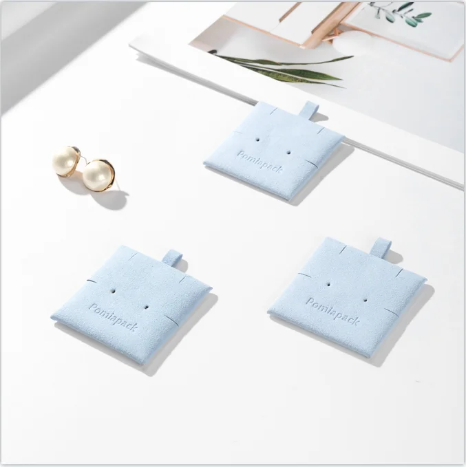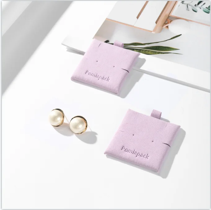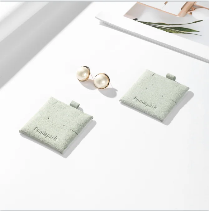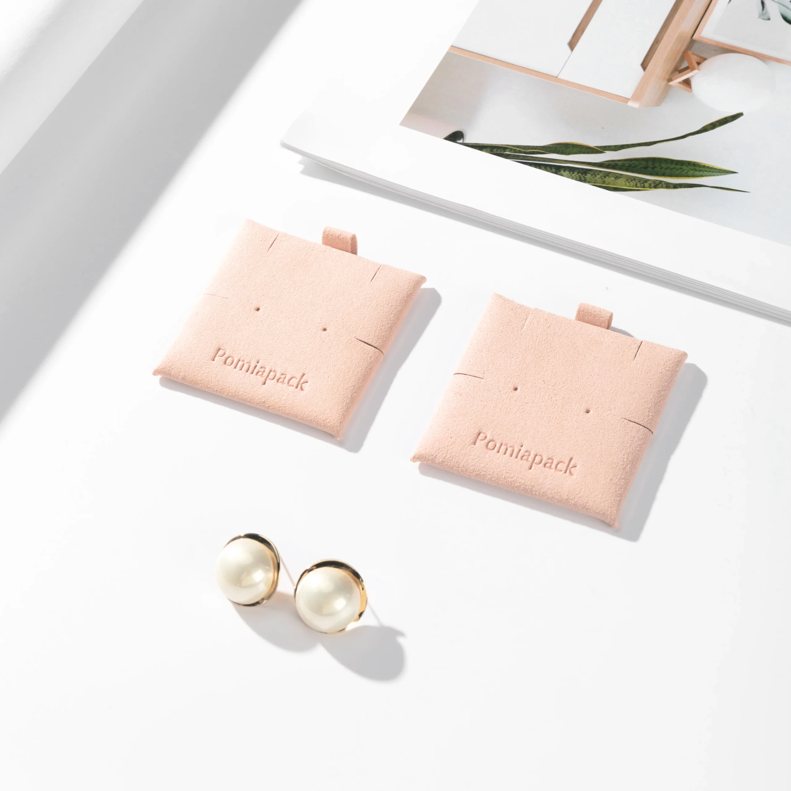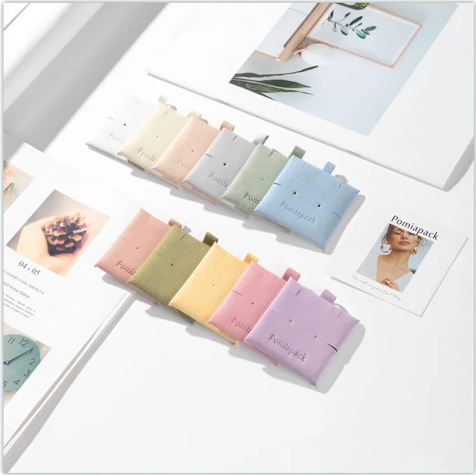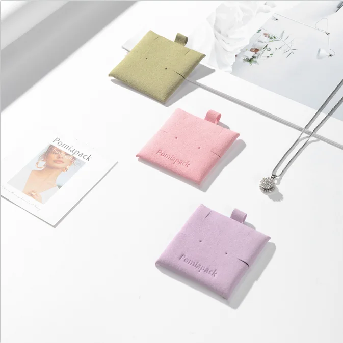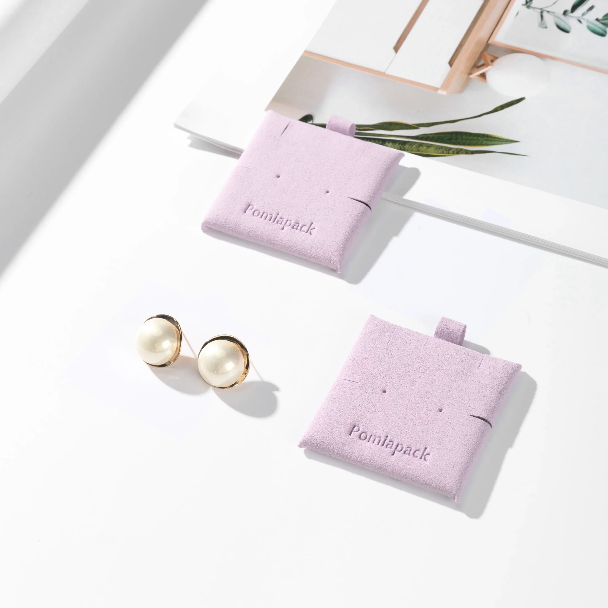Boyang Custom Logo Jewellery Package Microfiber Snap Button Pouch Bags Jewelry Earrings Necklace Pouch Gift Bag With Insert Card