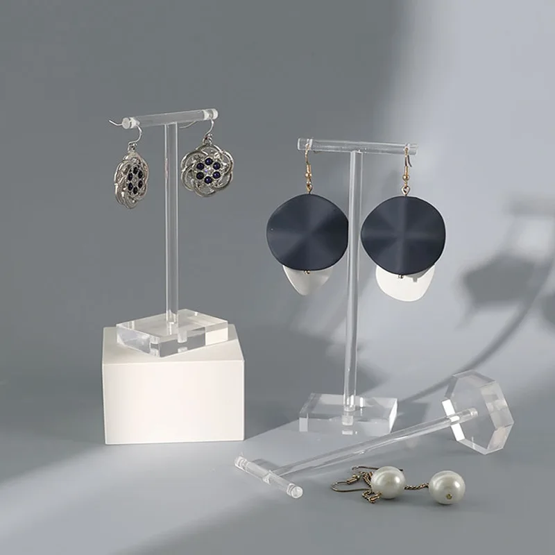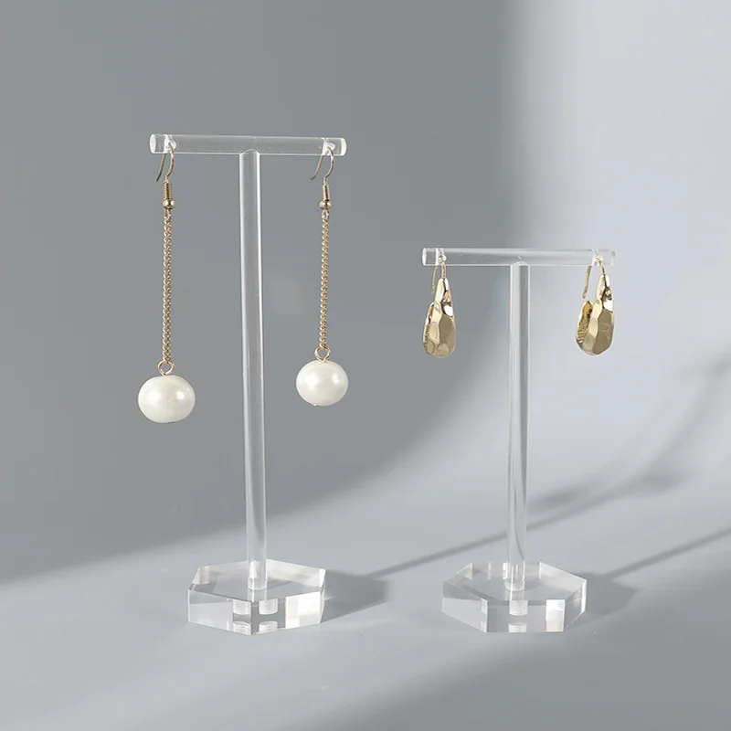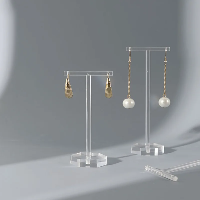 Acrylic Transparent T-Shaped Display Rack Jewelry Counter Photography Props Jewellery Earring Holder Display Showcase Stand