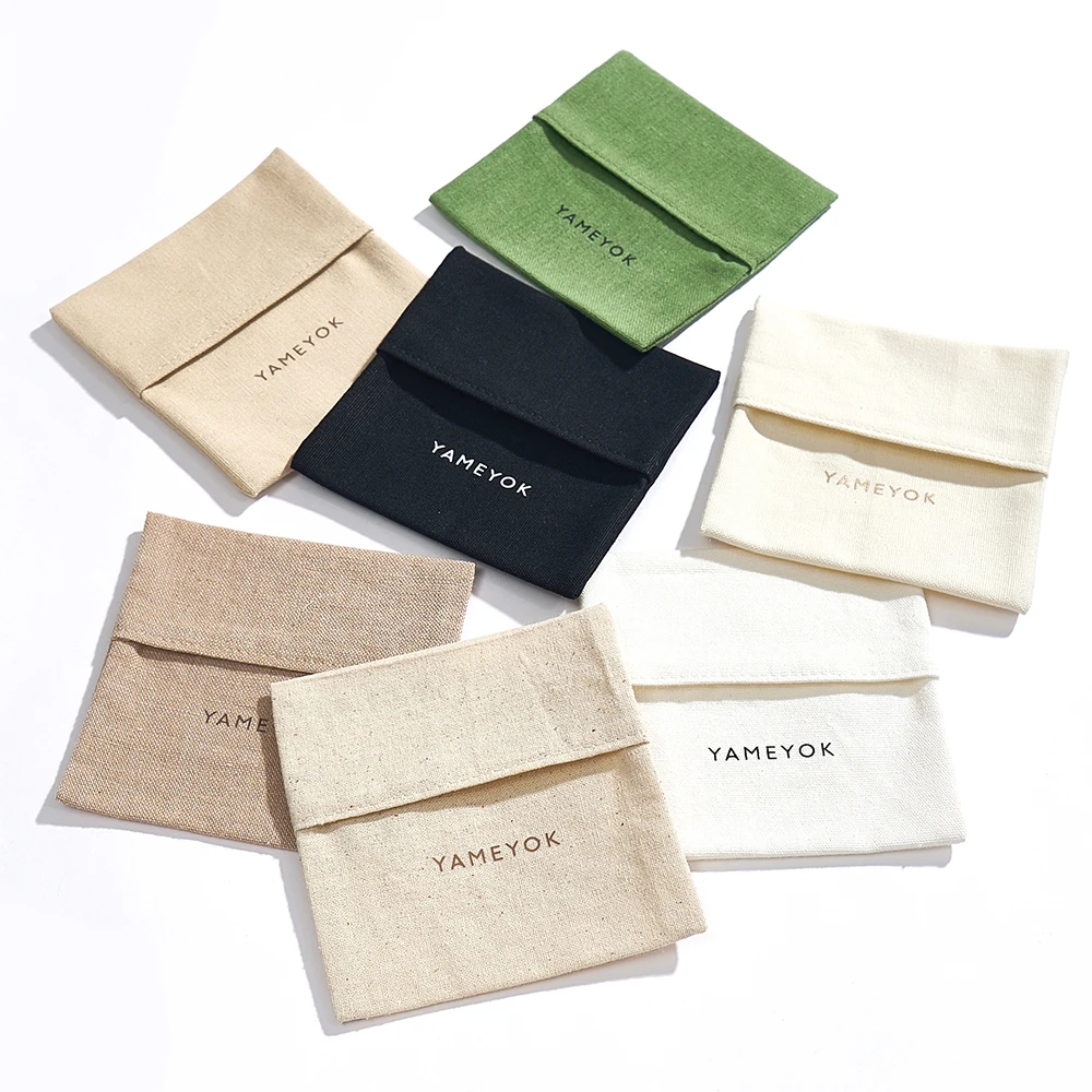 Custom Earring Ring Necklace Bracelet Packaging Organic Cotton Jewelry Pouch Bag