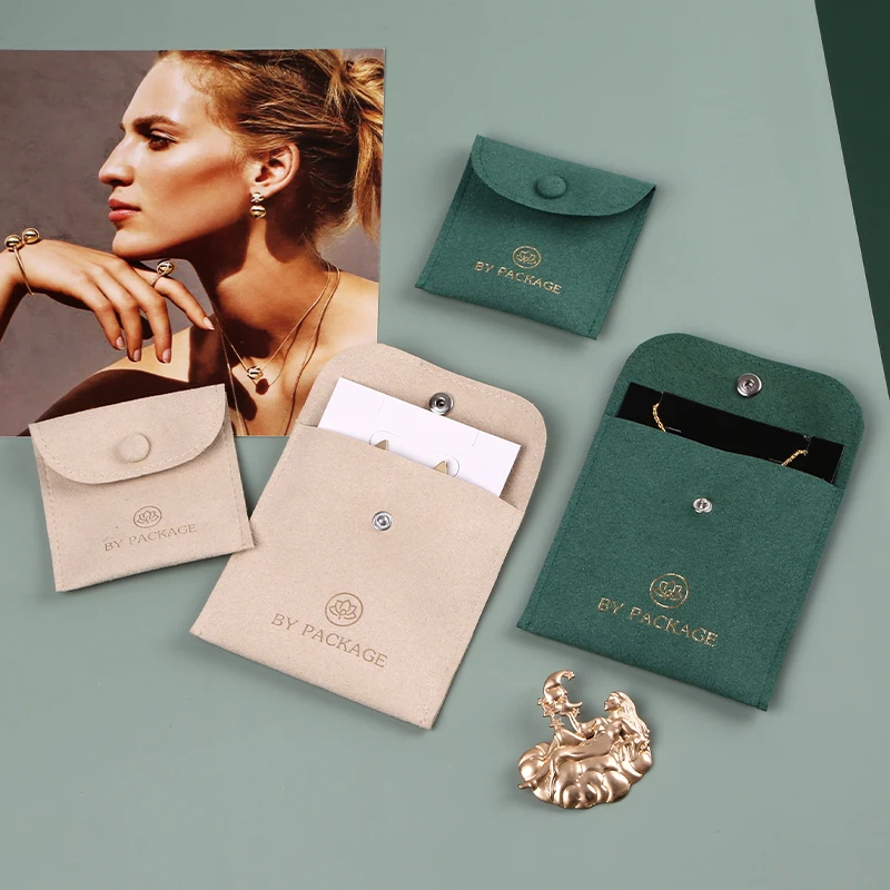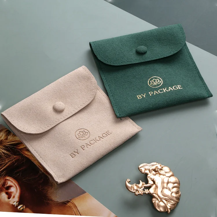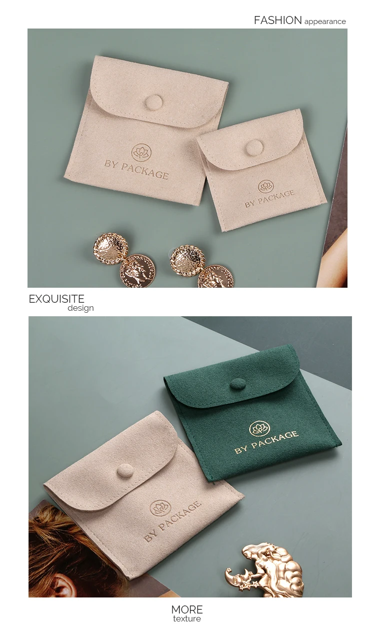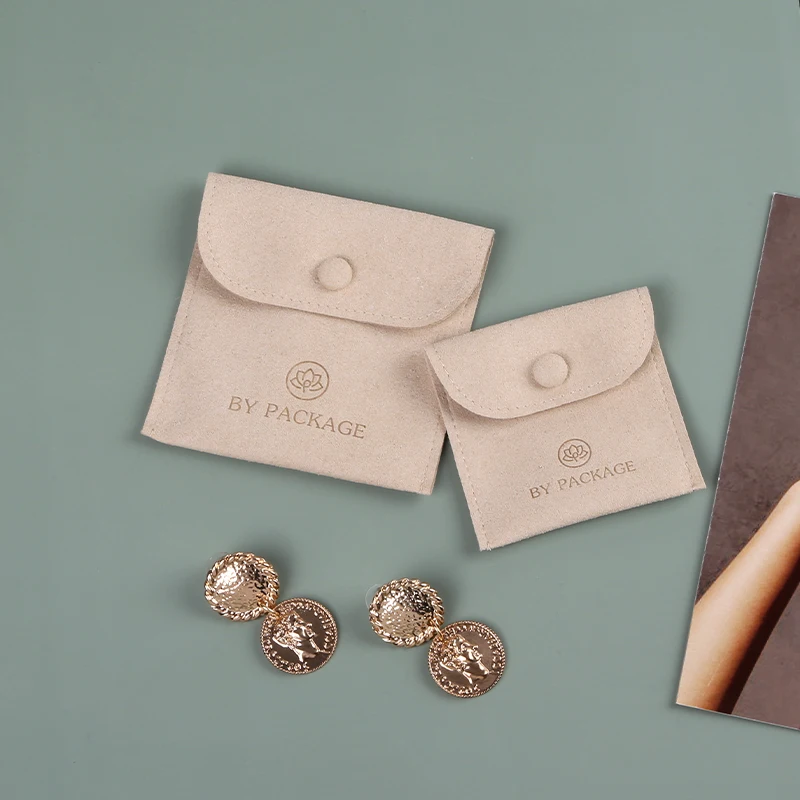 Boyang Custom Logo Jewellery Package Microfiber Snap Button Pouch Bags Jewelry Earrings Necklace Pouch Gift Bag With Insert Card