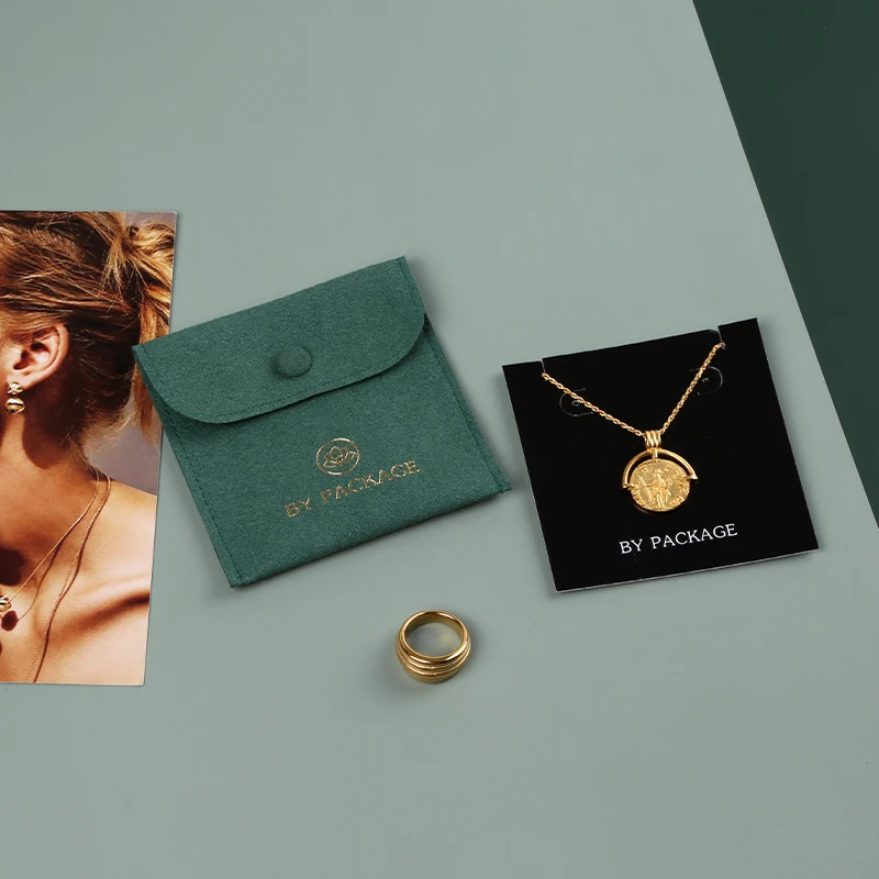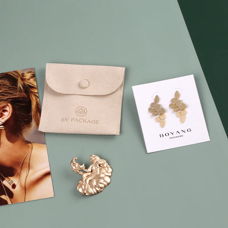 Boyang Custom Logo Jewellery Package Microfiber Snap Button Pouch Bags Jewelry Earrings Necklace Pouch Gift Bag with Insert Card