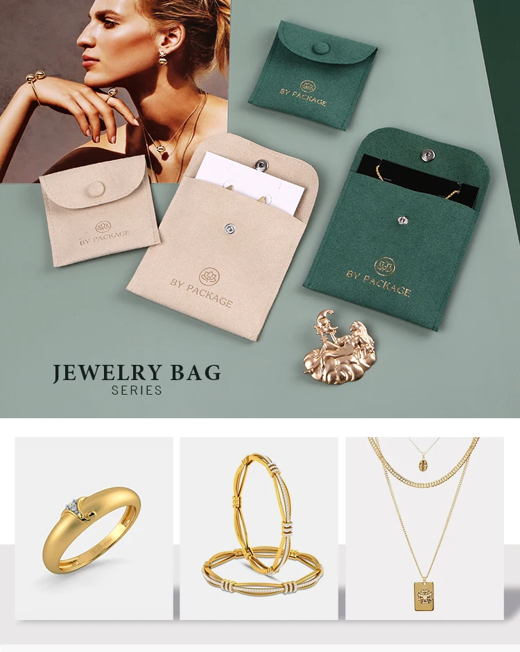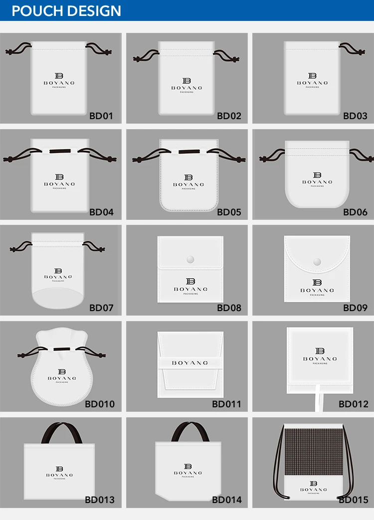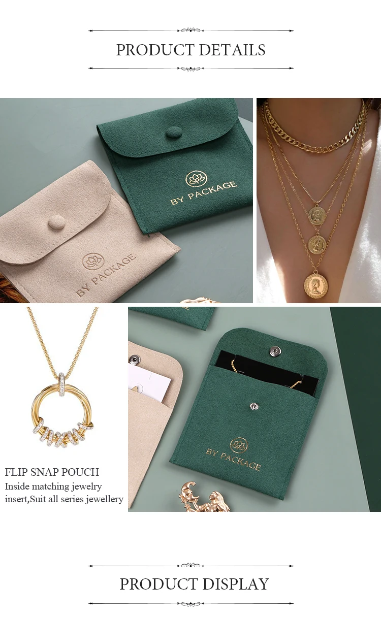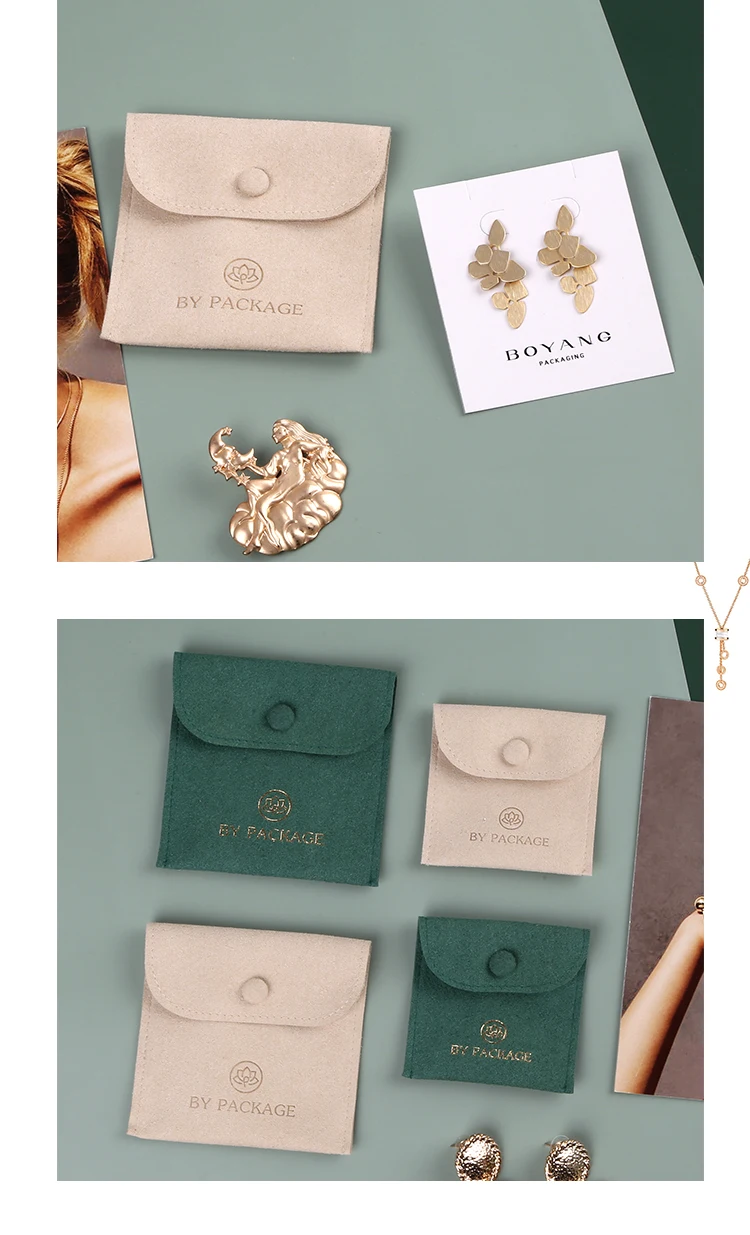 | Product Name | Boyang Custom Logo Jewellery Package Microfiber Snap Button Pouch Bags Jewelry Earrings Necklace Pouch Gift Bag with Insert Card |