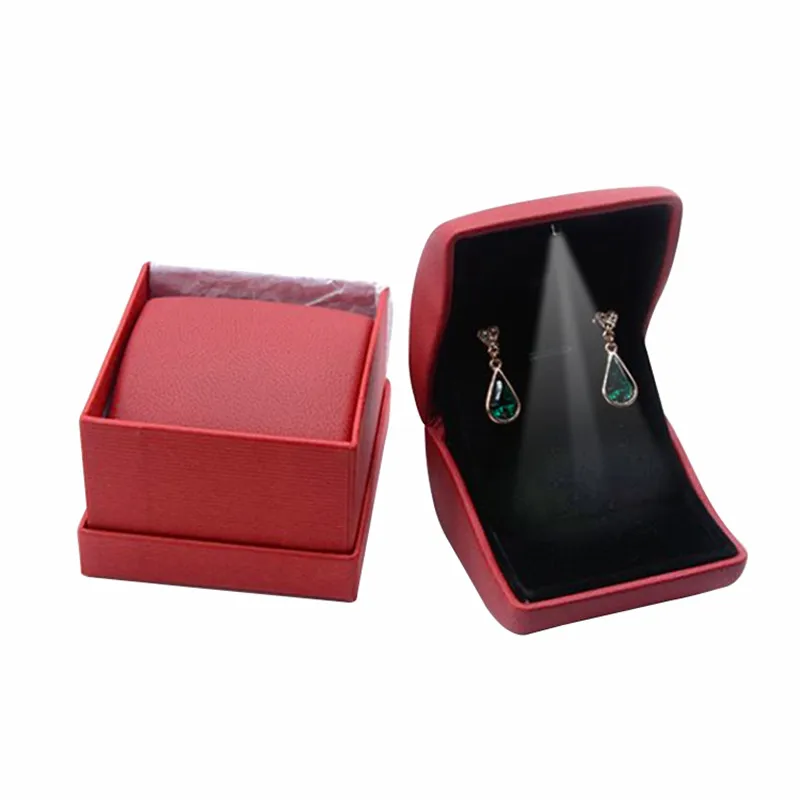Classic Design PU Leather LED Lighted Earring Pendant Ring Boxes Wholesale Luxury Quality Jewelry Gift Packing Cases
