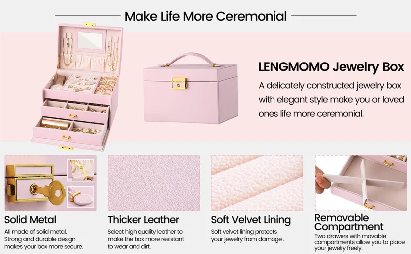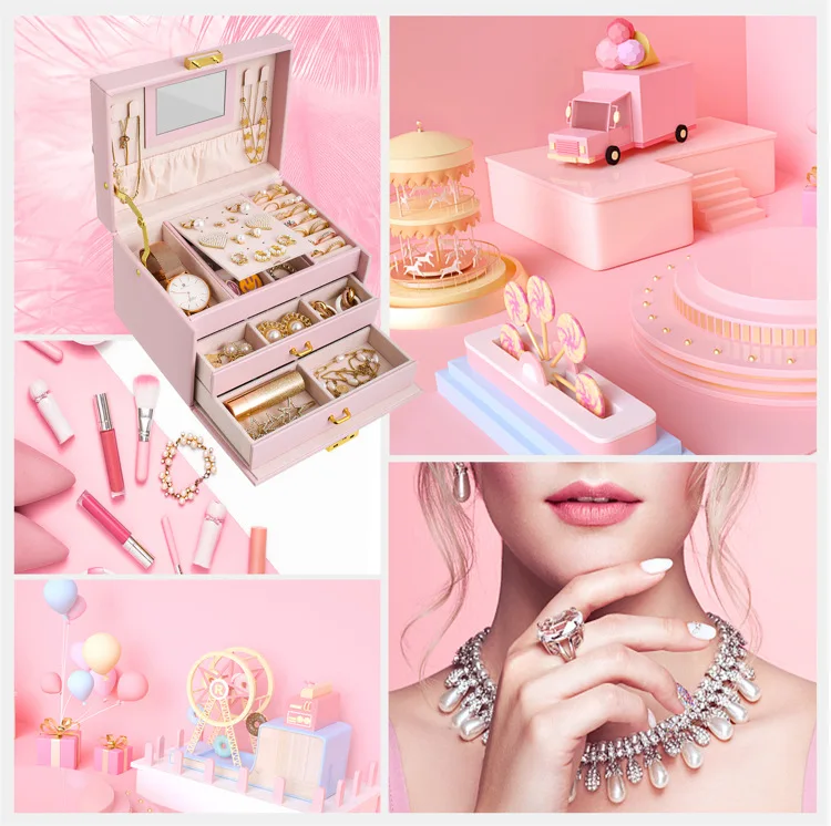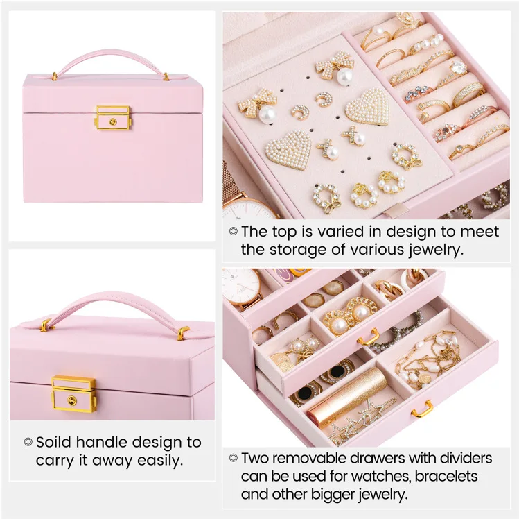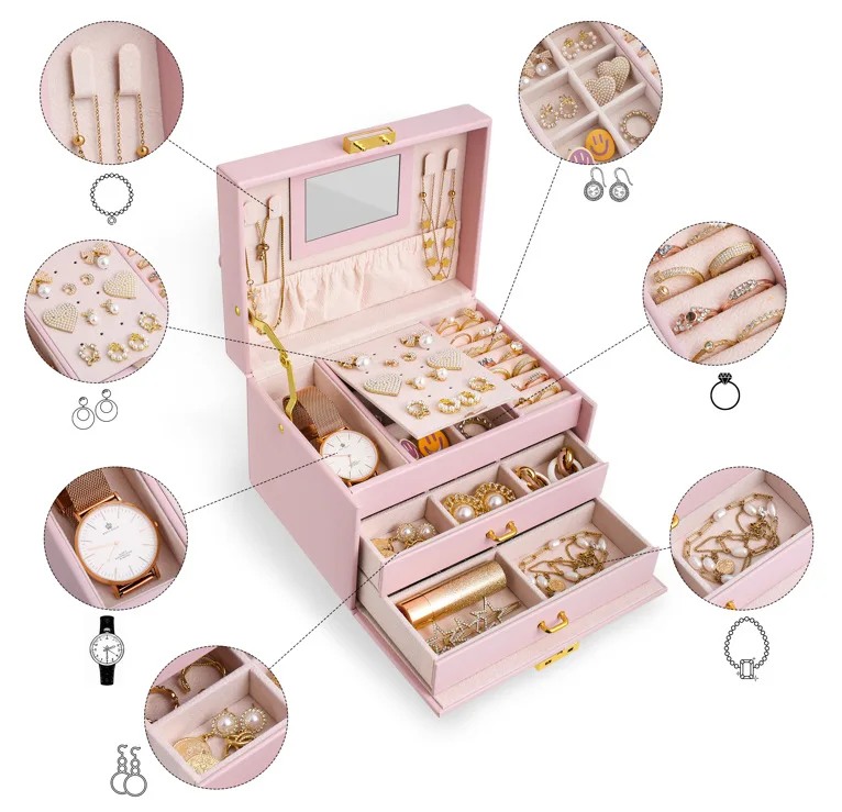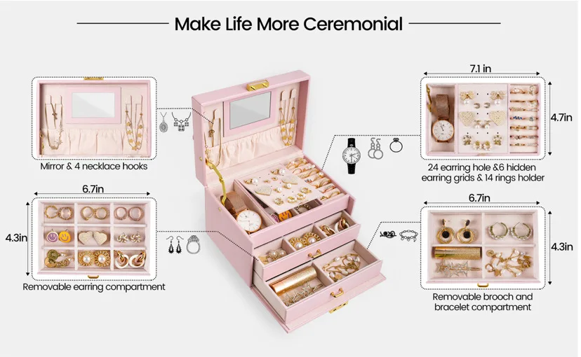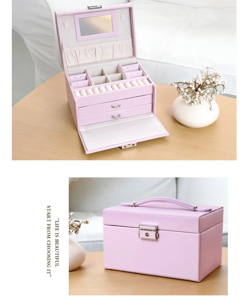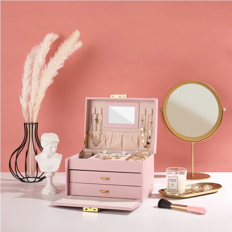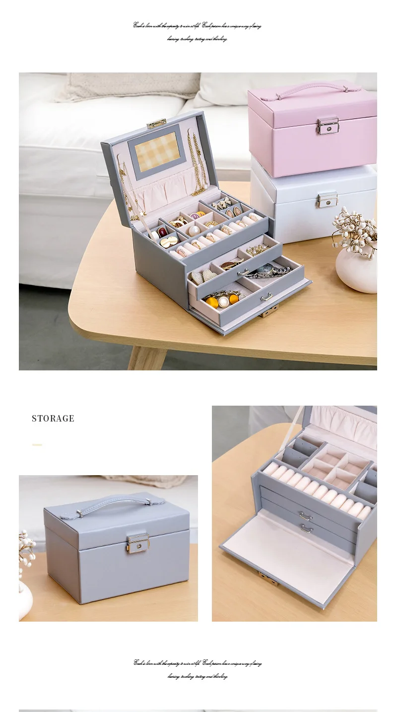 Large Capacity Multi Functional Faux Leather Luxury Jewelry Ornaments Display Storage Case Box