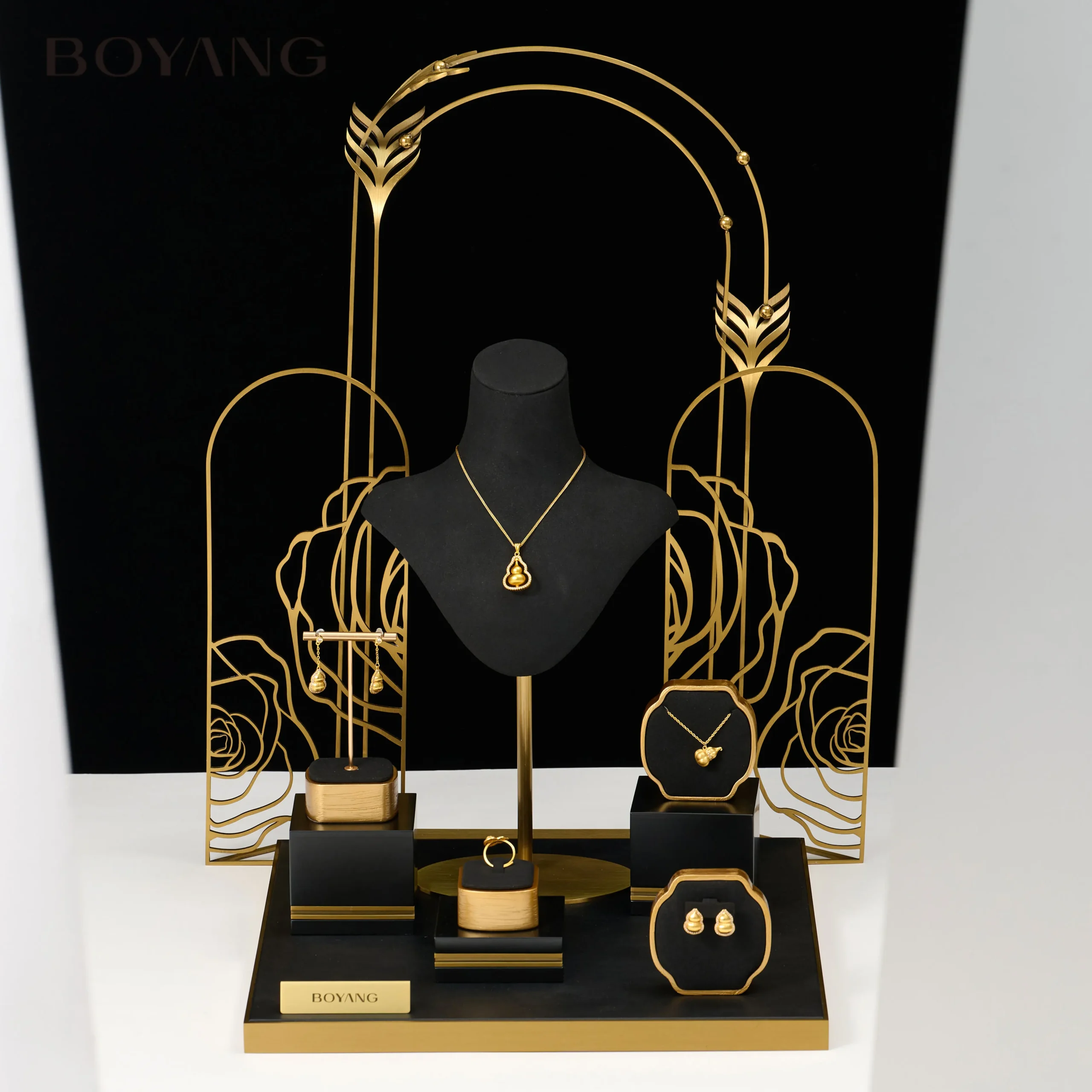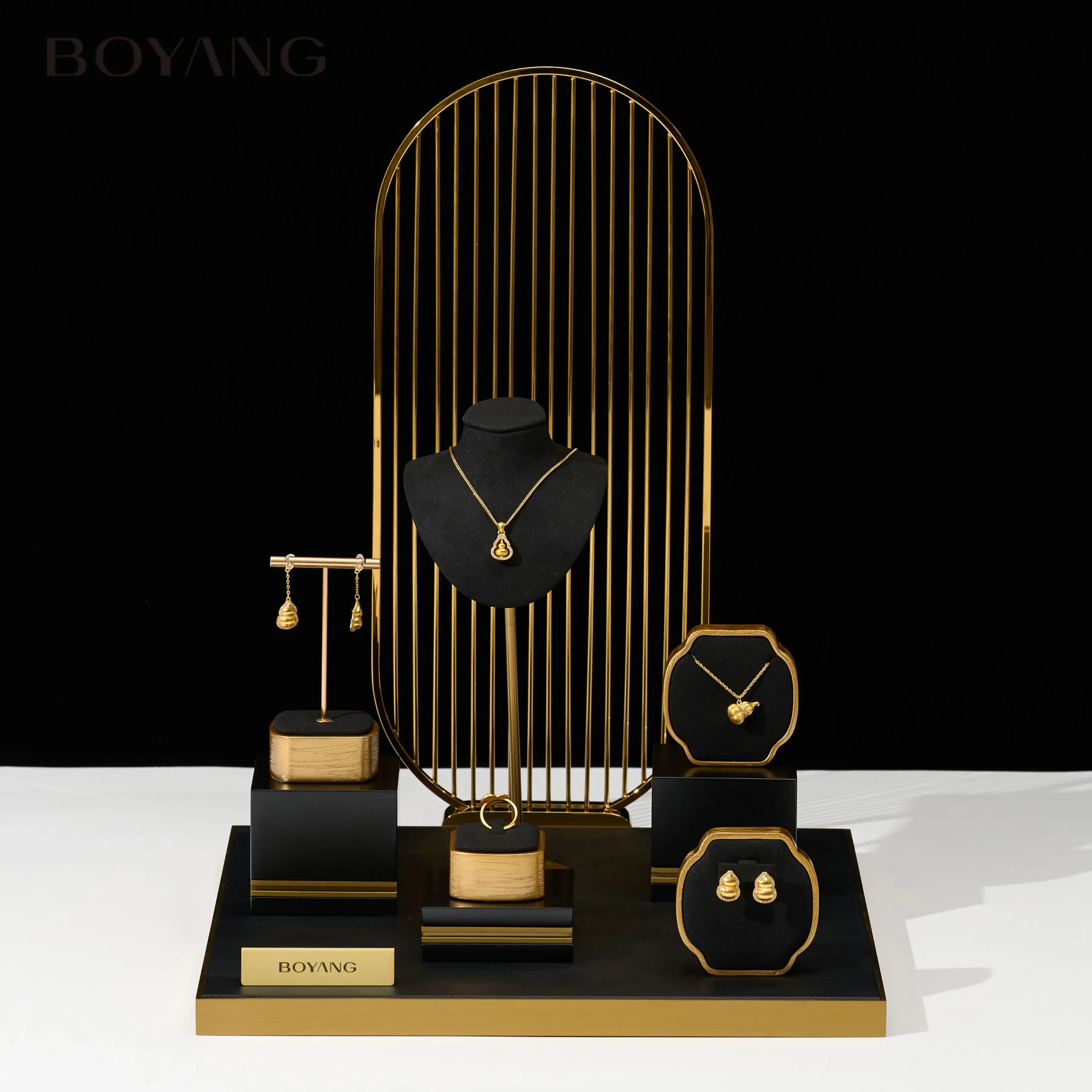 Custom Design Luxury Bracelet Earrings Ring Necklace Props Tray Jewelry Display Stand Set