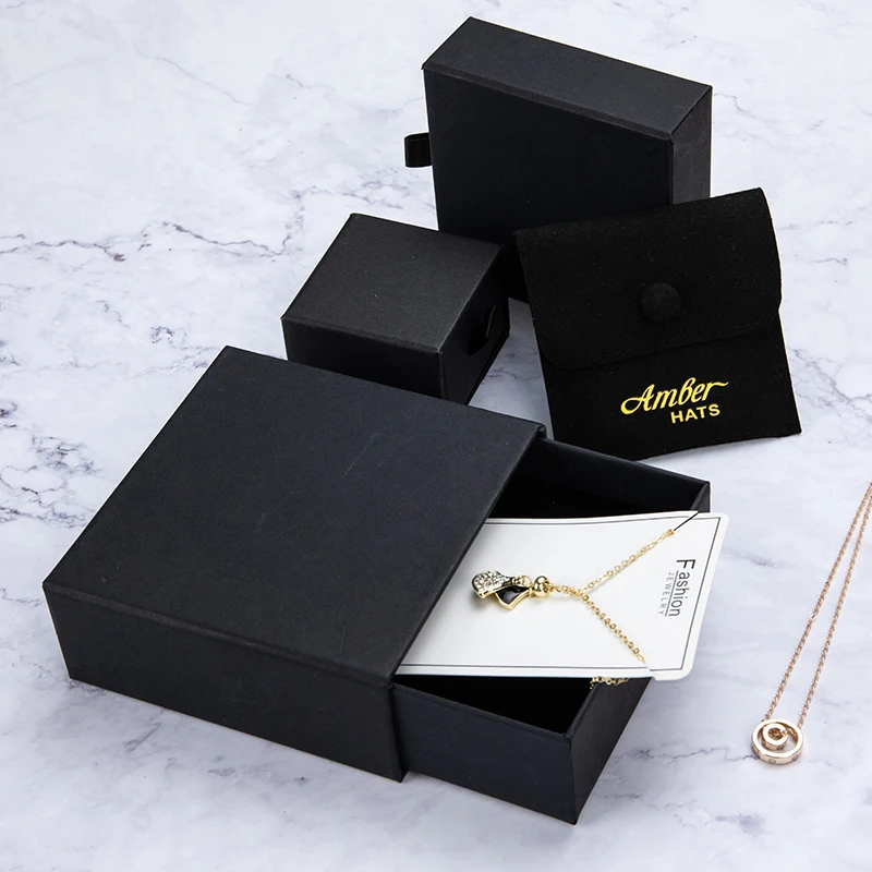 Custom Logo Cardboard Jewelry Gift Bags for Jewelry Packaging Necklace Earrings Packaging Sliding Drawer Box with Black Sponge