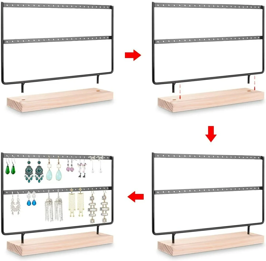 Custom Logo Household Metal Jewelry Earring Display Jewellery Showcase Storage Rack Stand for Store Shop Counter Top Table