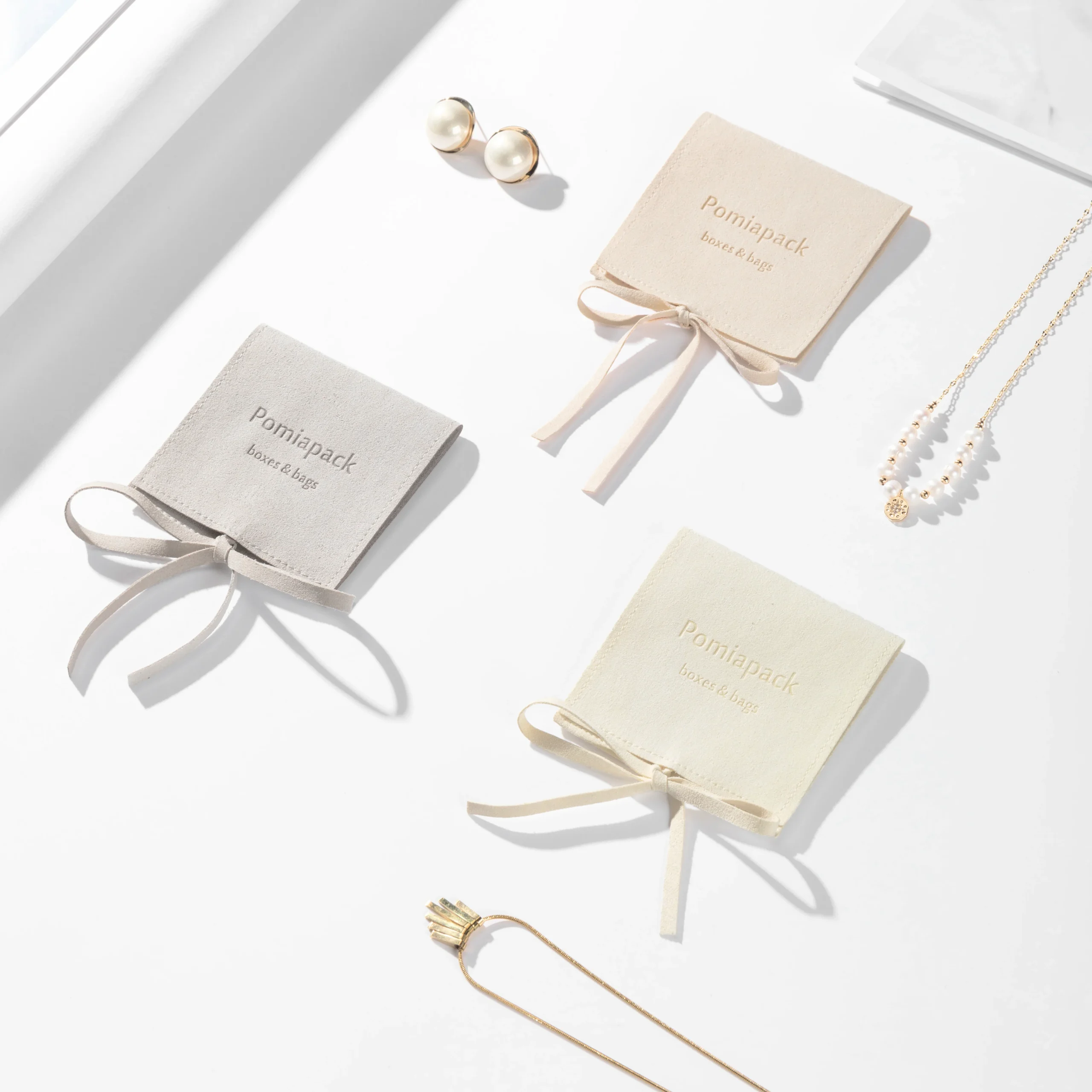 Custom logo Luxury Cream Jewelry Packaging Pouch Necklace Earrings Jewellery Microfiber Pouch Custom Jewelry Bag