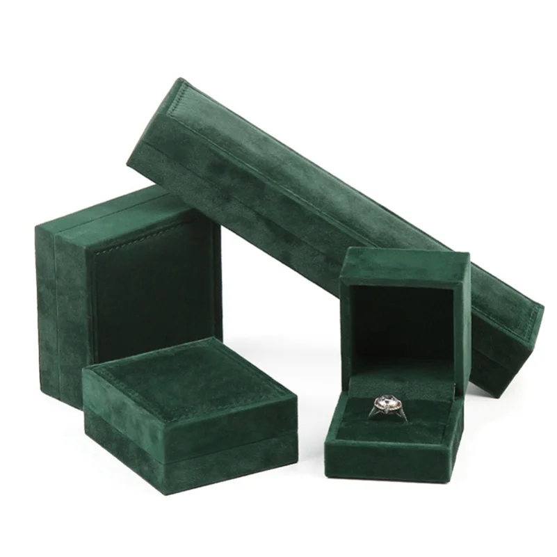 Customized Logo Wholesale Plastic Velvet Cover Square Elegant Velvet Jewelry Box for Ring Earrings Pendant Bracelet Necklace