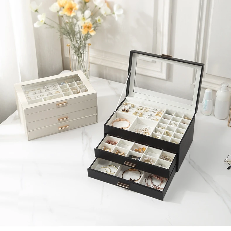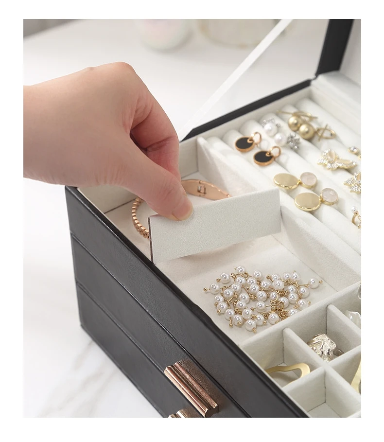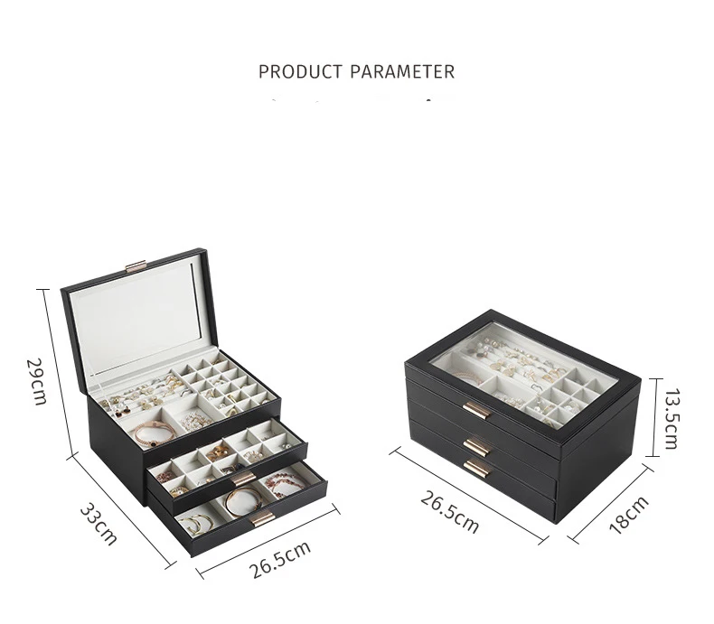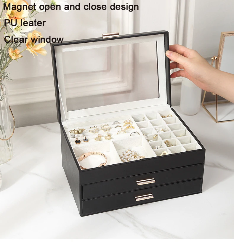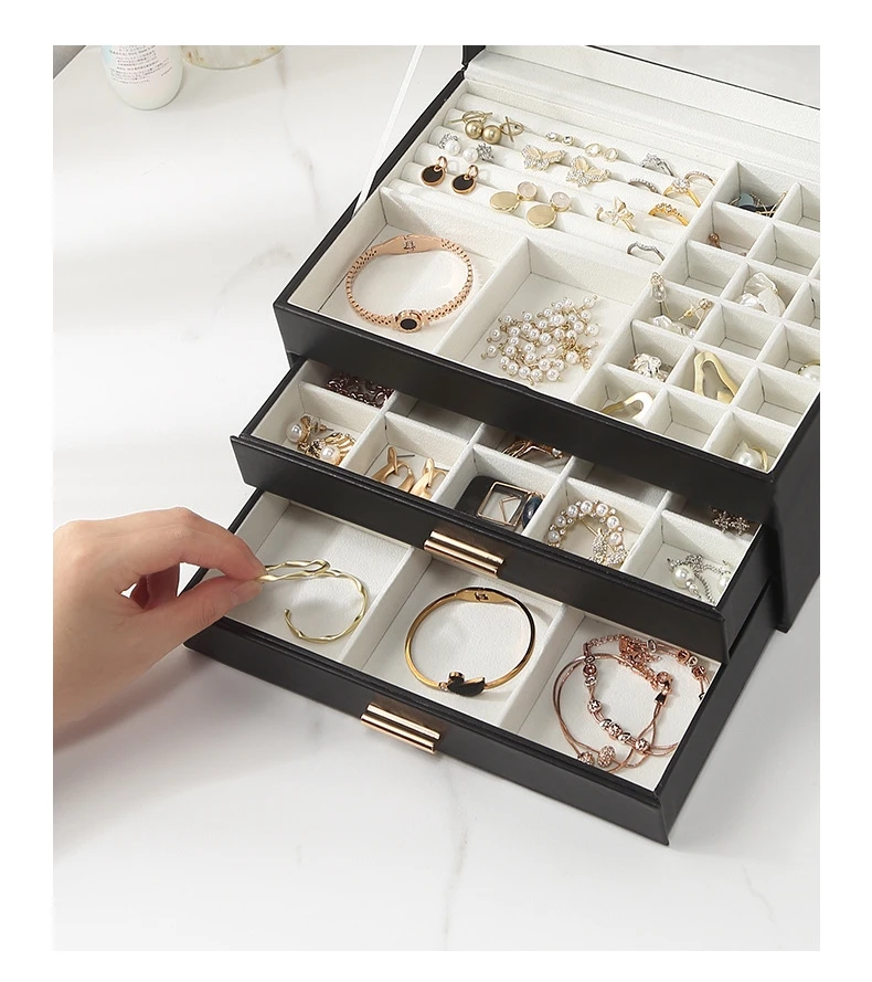 Item name | Custom rectangle 3 Tier Leather Jewelry Case Storage Display Organizer Show Makeup Trade Shows Cases with Drawer |