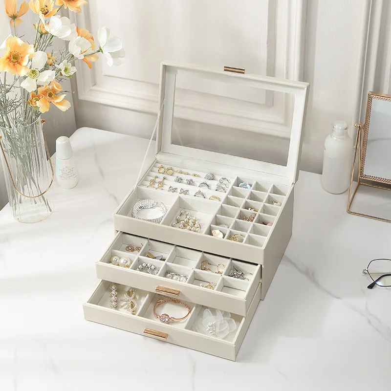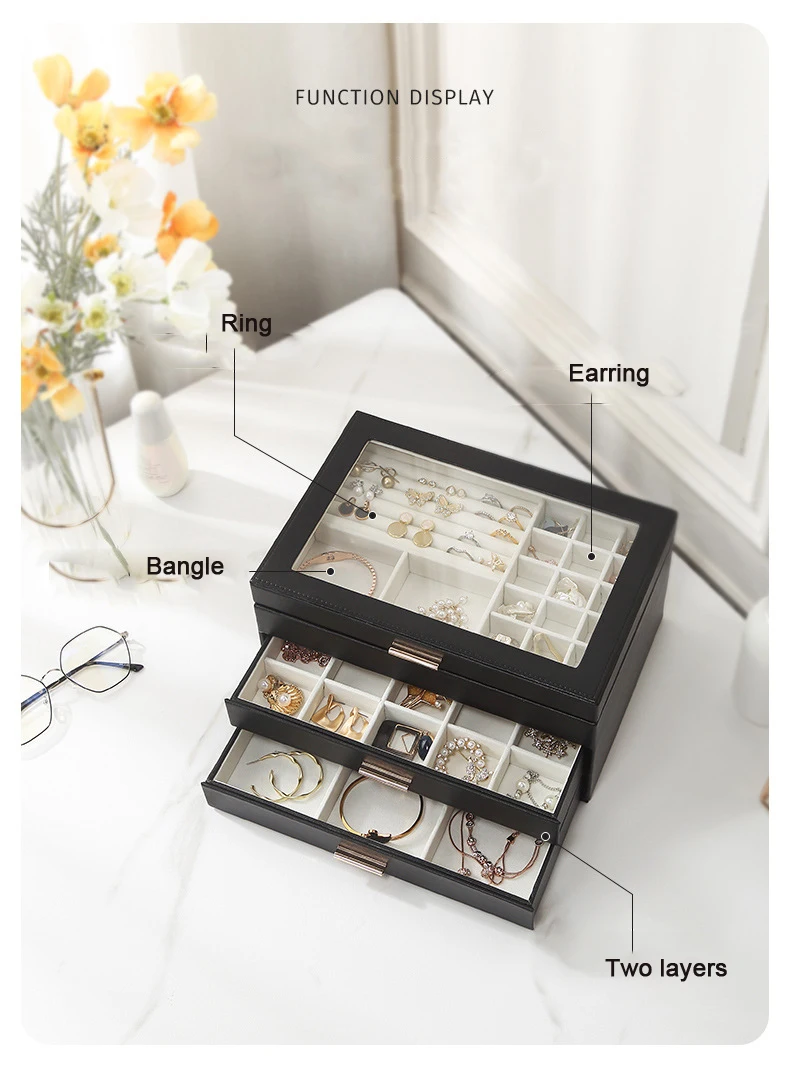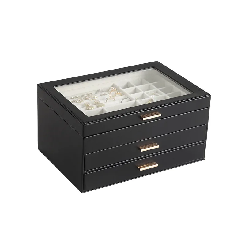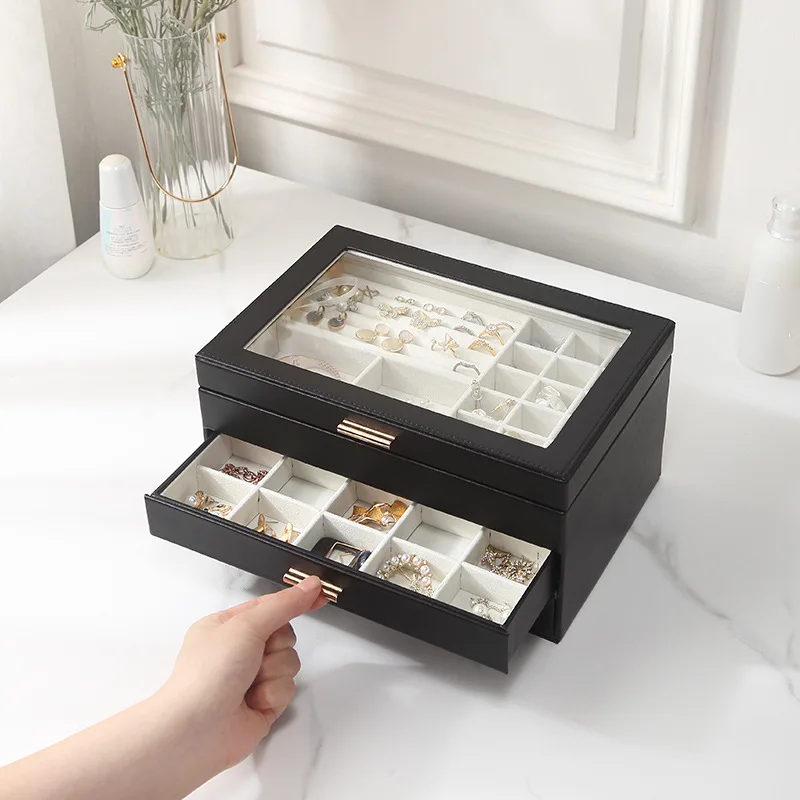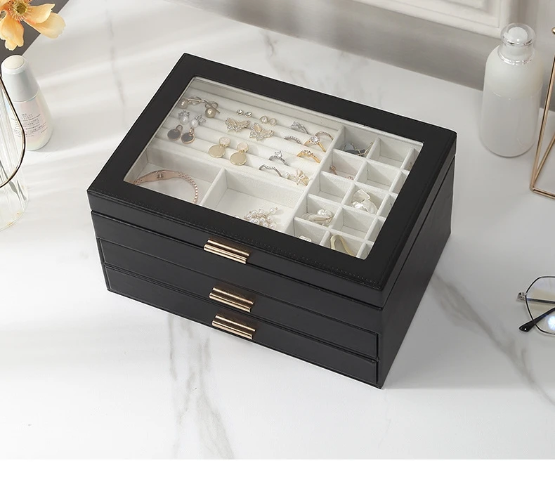 Item name | Custom rectangle 3 Tier Leather Jewelry Case Storage Display Organizer Show Makeup Trade Shows Cases with Drawer |