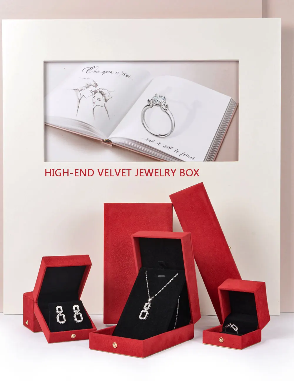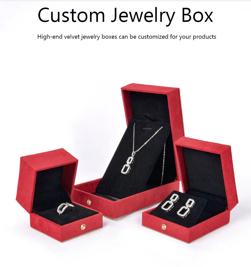 Custom Wholesale Luxury Velvet Earring Bracelet Necklace Ring Box Packaging Velvet Jewelry Box