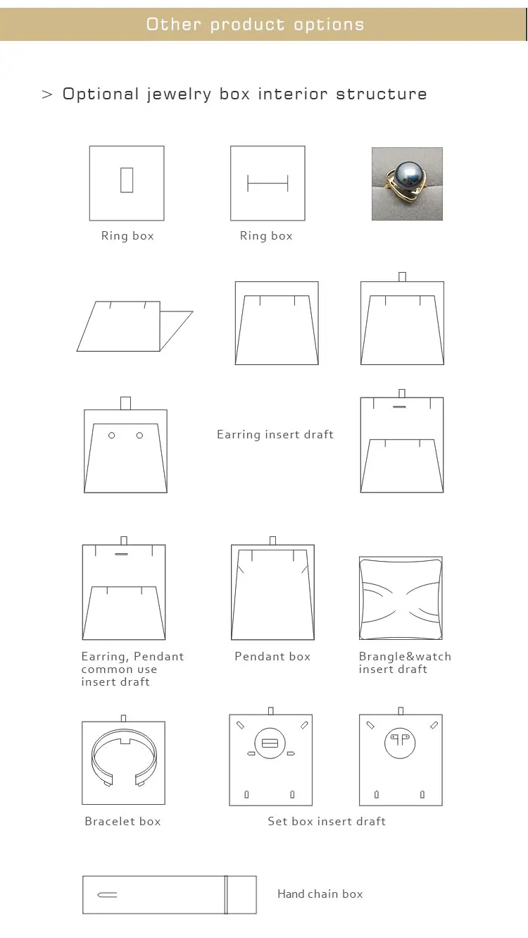| Color | ring box, necklace box, earring box, bracelet box, double bangle box |