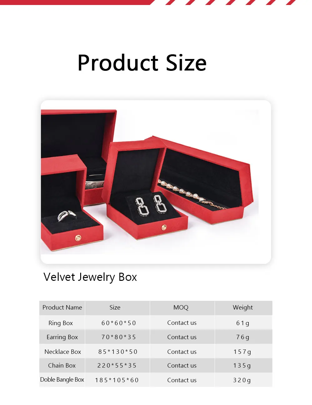 Product Name | Custom Wholesale Luxury Velvet Earring Bracelet Necklace Ring Box Packaging Velvet Jewelry Box | |