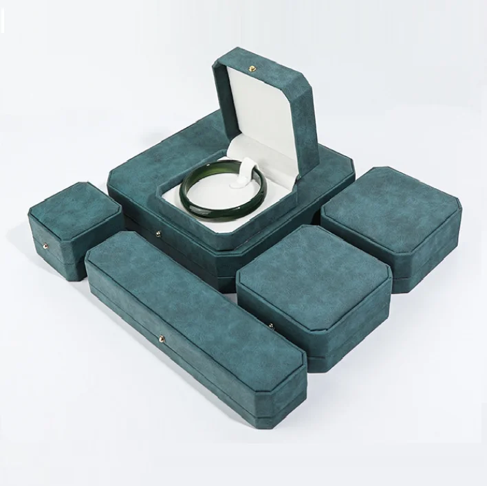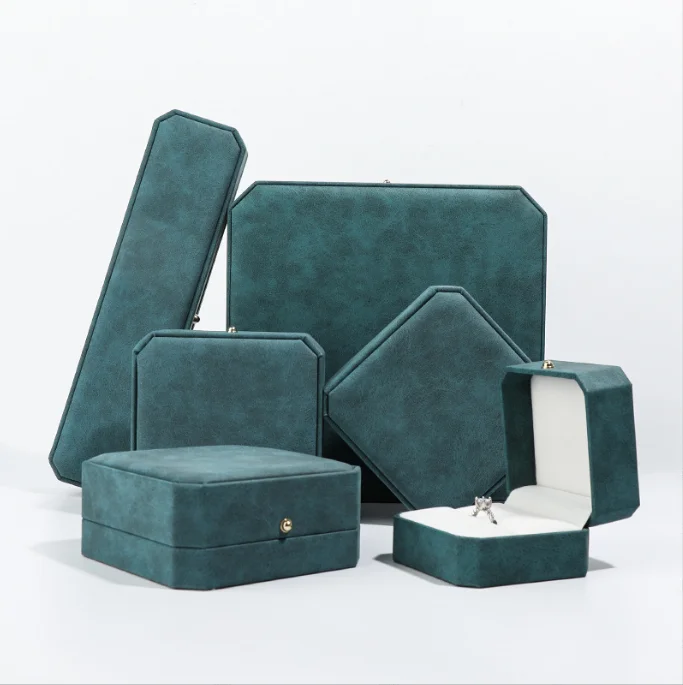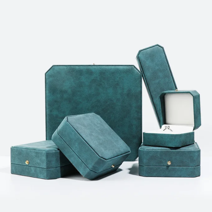 Customized Luxury PU Leather Octagonal Jewelry Box with Eco-friendly Green Gold Buckle Logo and Surprise Packaging