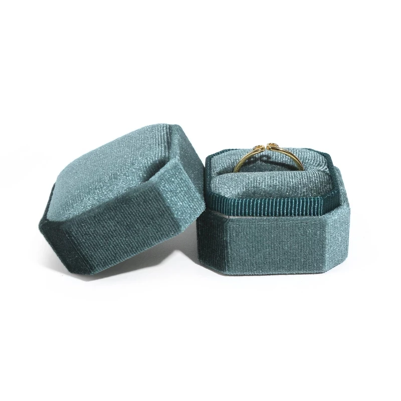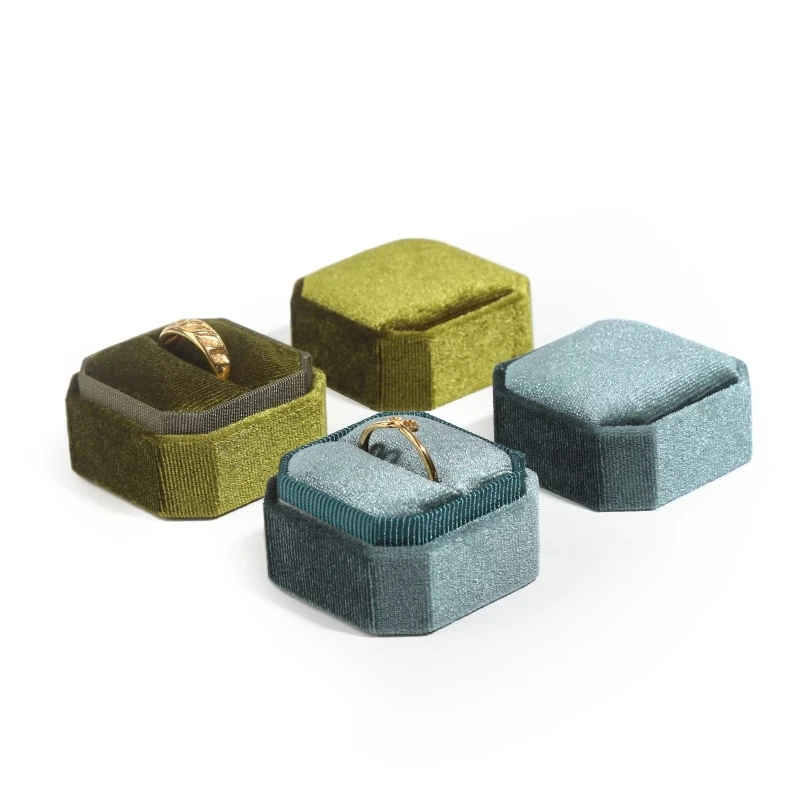 Customized Small Octagon Velvet Vintage Gift Small Necklace Packaging Mini Display Personalized Ring Pendant Jewelry Storage Box