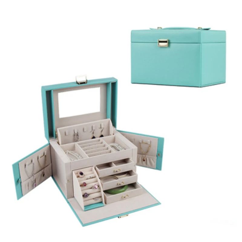 Green Pu Leather Multi-Function Three-Tier Jewelry Storage Jewelry Box Earring Storage Show Cases With Drawers