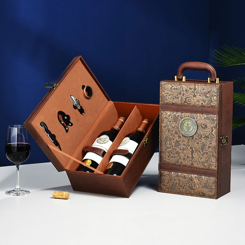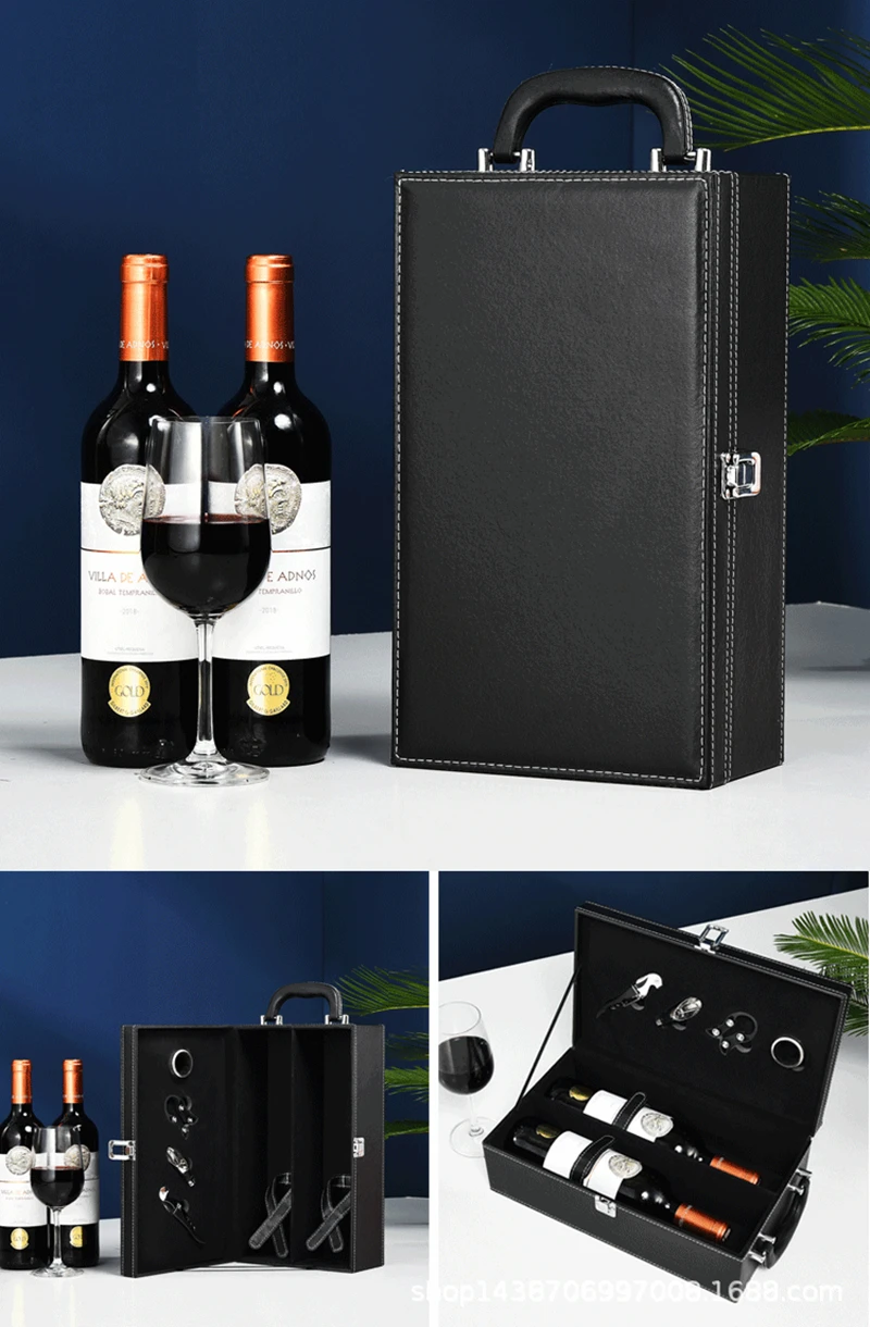 Factory Wholesale Stock PU Leather Red Wine Gift Packaging Box Luxury Spirit Champagne Brandy Liquor Display Storage Case