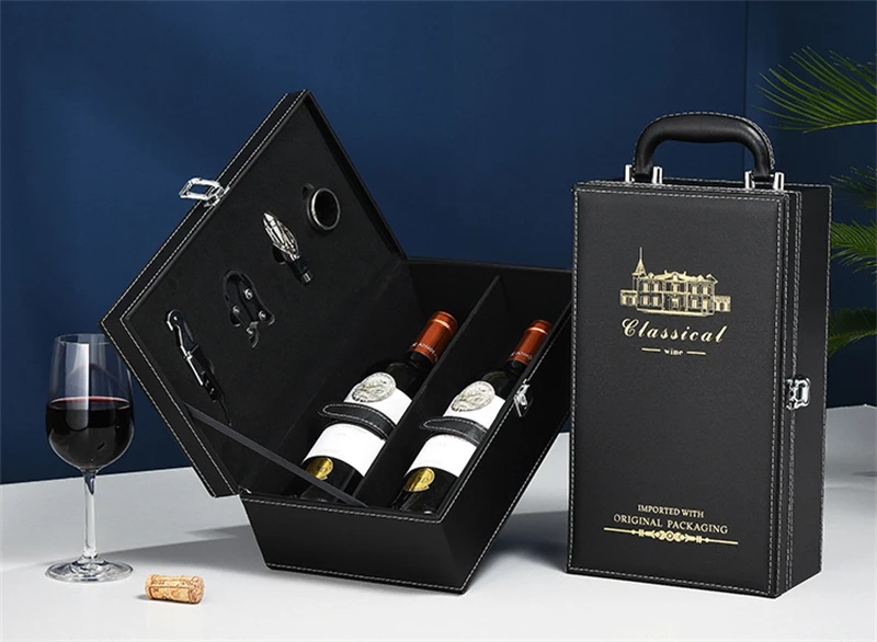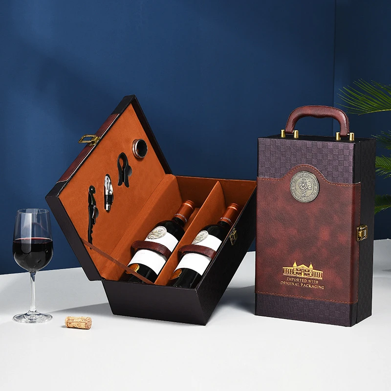 Item name | Factory Wholesale Stock PU Leather Red Wine Gift Packaging Box Luxury Spirit Champagne Brandy Liquor Display Storage Case |