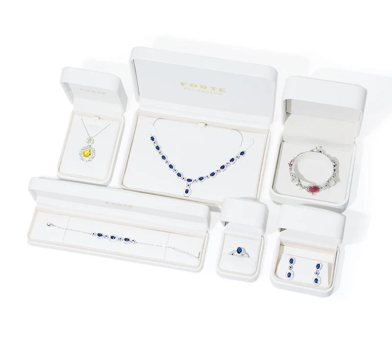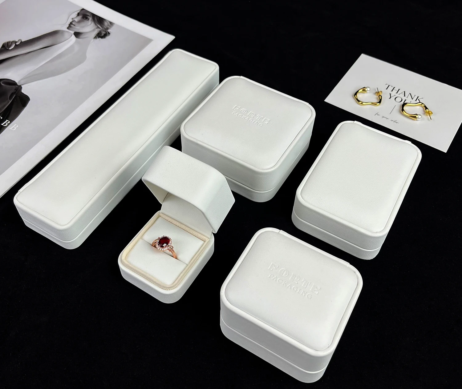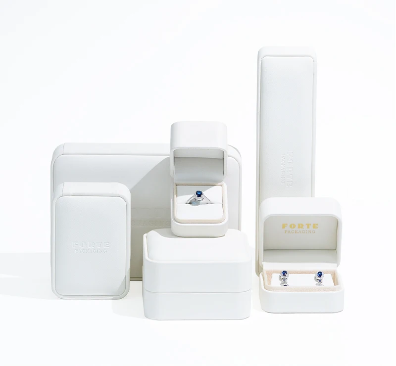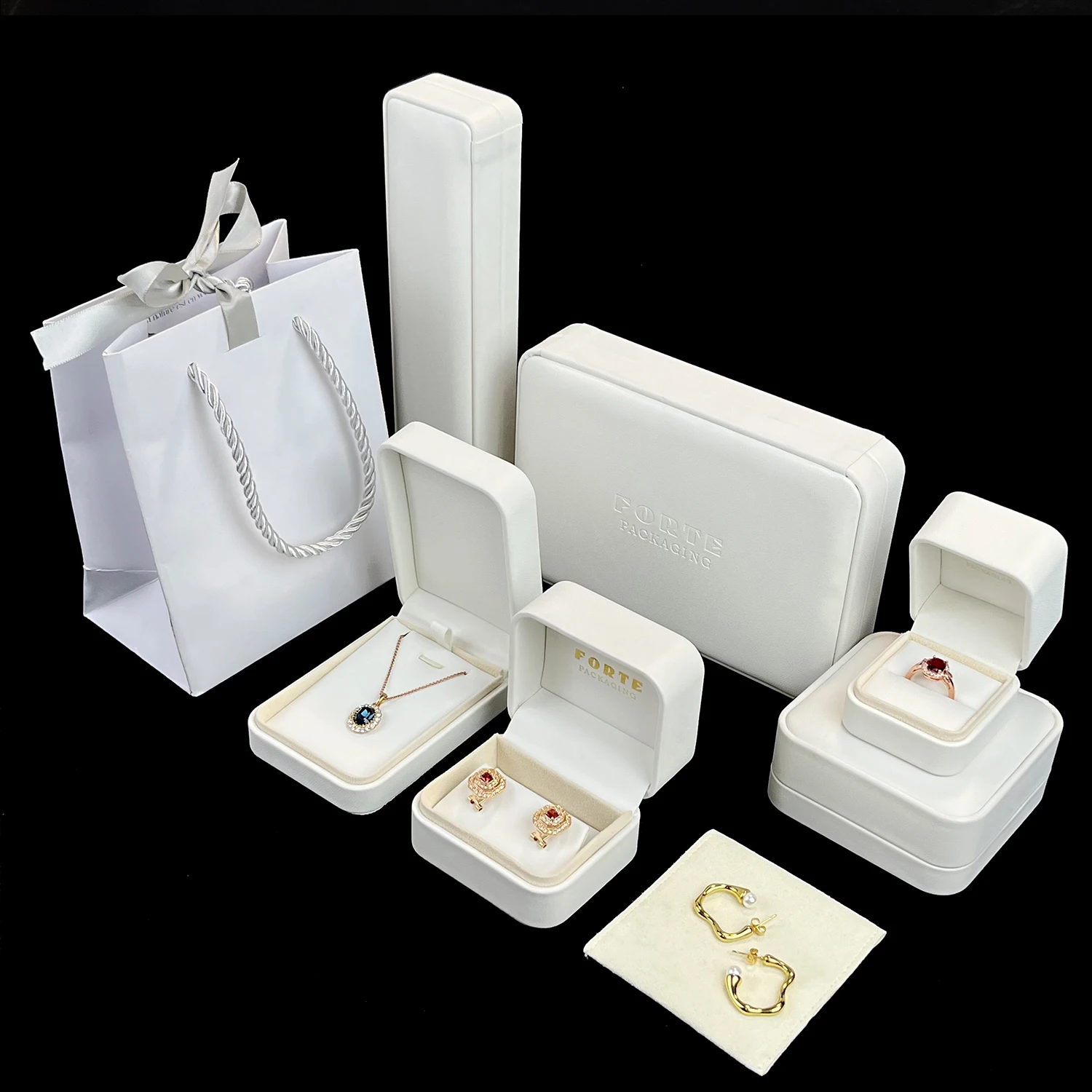FORTE Wholesale White Leather Jewelry Packaging Wedding Ring Boxes Jewelry Boxes Luxury Bracelet Necklace PU Leather Jewelry Box