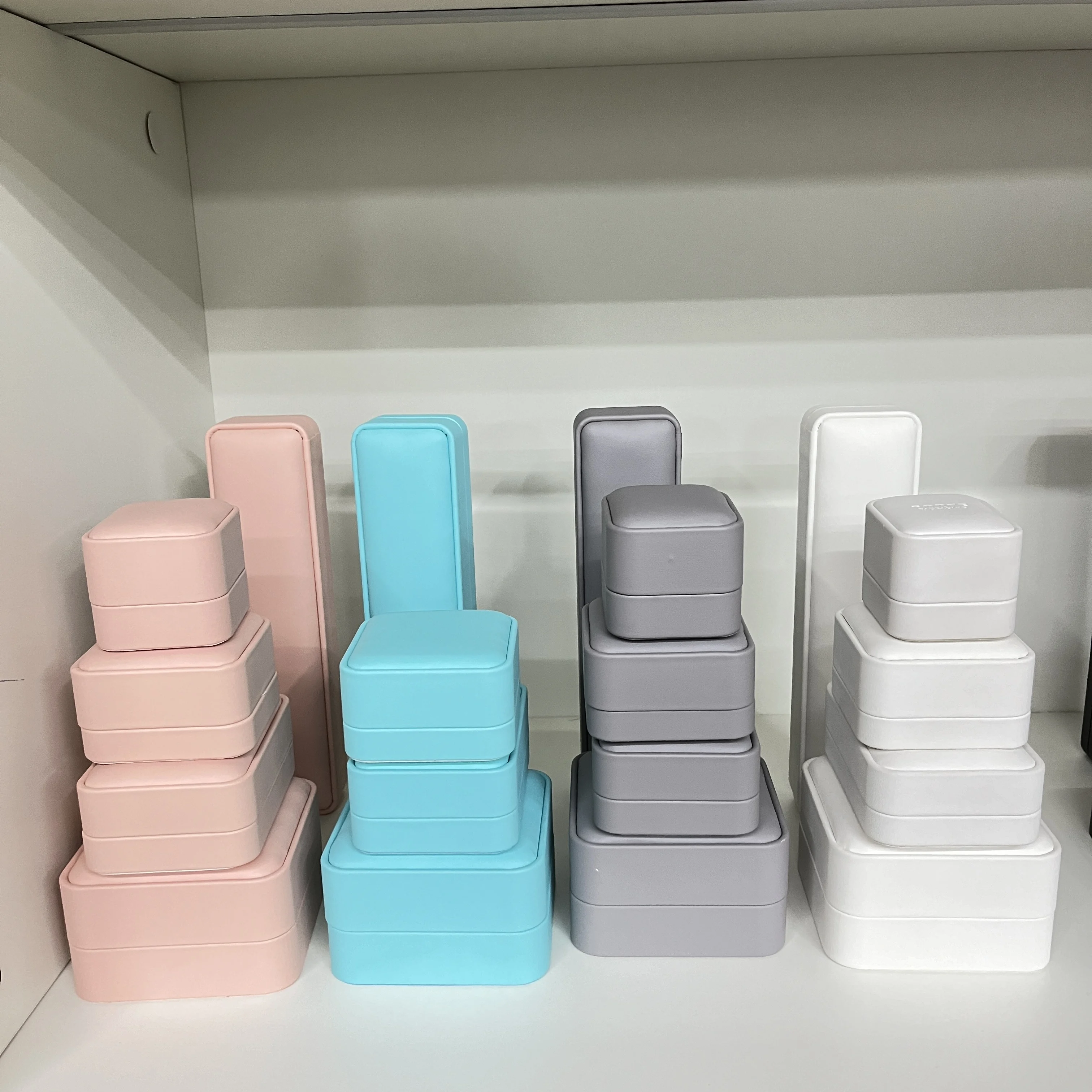 Custom Logo Printed Pu Leather Jewelry Boxes Single Double Ring Pendant Bangle Bracelet Necklace Jewellery Gift Packaging Box