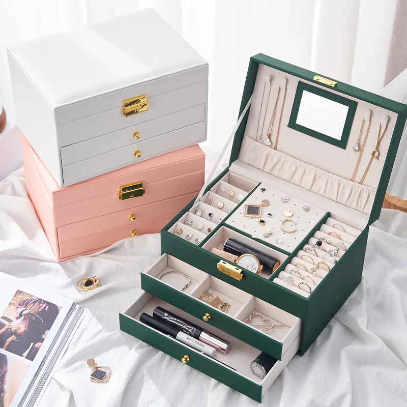 Item name | Green Pu Leather Multi-Function Three-Tier Jewelry Storage Jewelry Box Earring Storage Show Cases With Drawers |