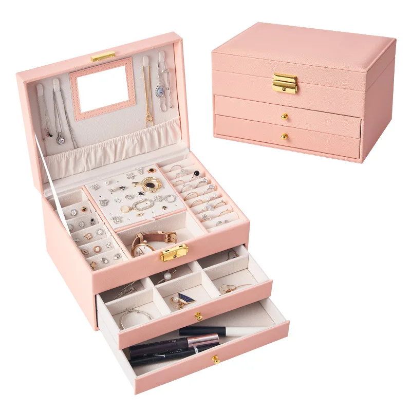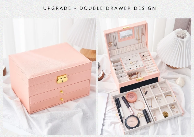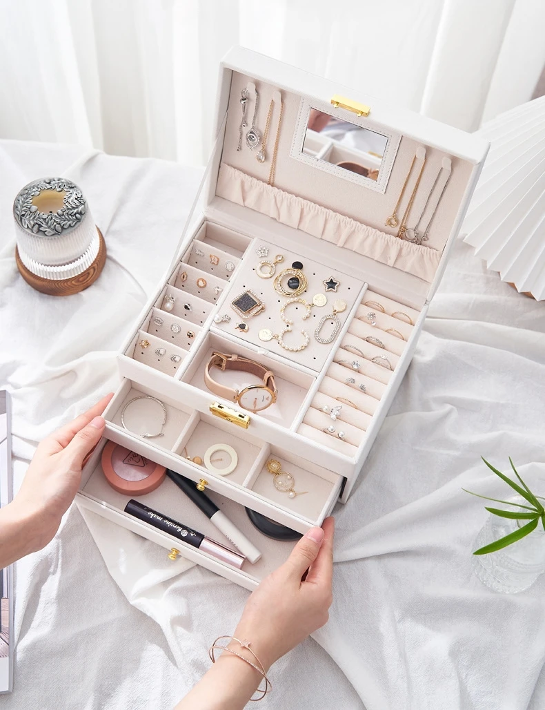 Large Capacity Multi Functional Faux Leather Luxury Jewelry Ornaments Display Storage Case Box