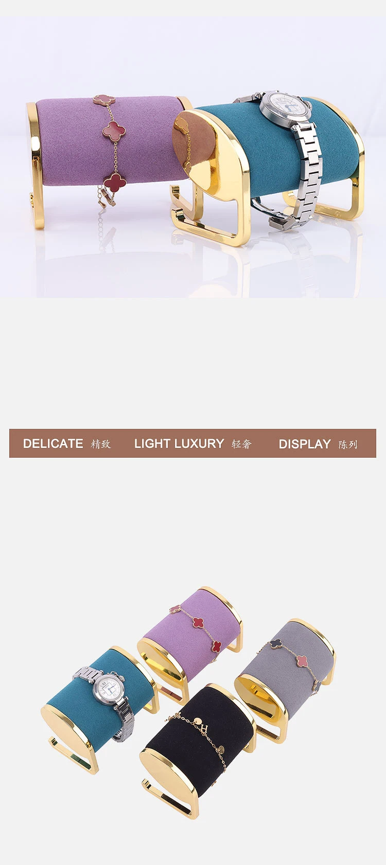 High End Suede Watch Window Stand Creative Design Metal Jewelry Bracelet Bangle Display Prop