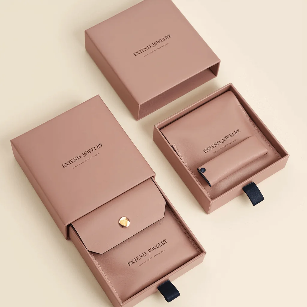 Hot Sale Custom Logo Jewelry Rigid Paper Drawer Boxes Recyclable Earrings Gift Packaging Box With Velvet Pouch