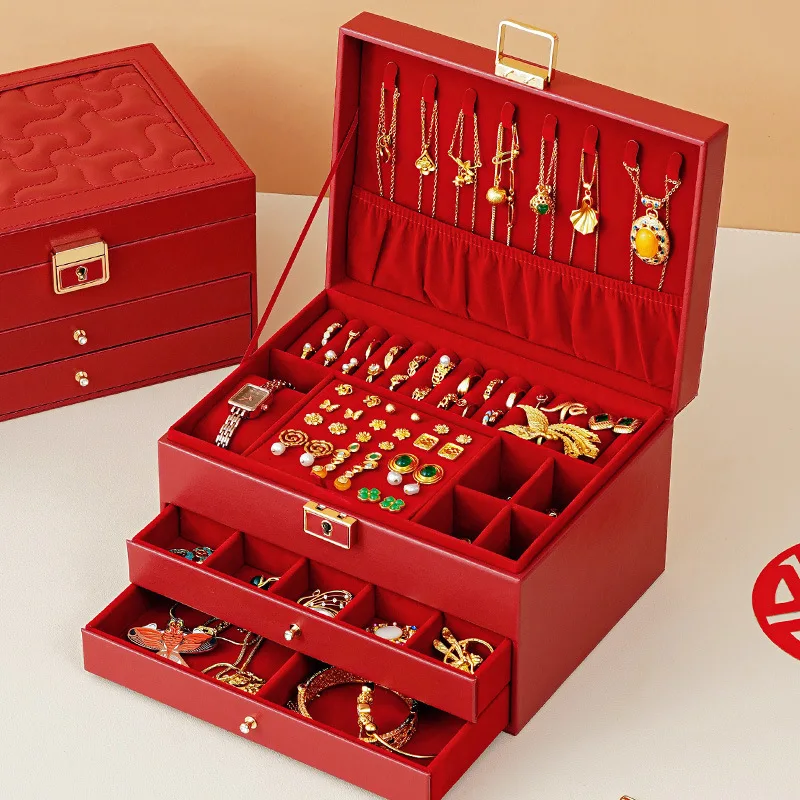 Ready to Ship Wholesale 3 Layers Leather Watch Jewellery Ornaments Storage Organizer Case with Drawer