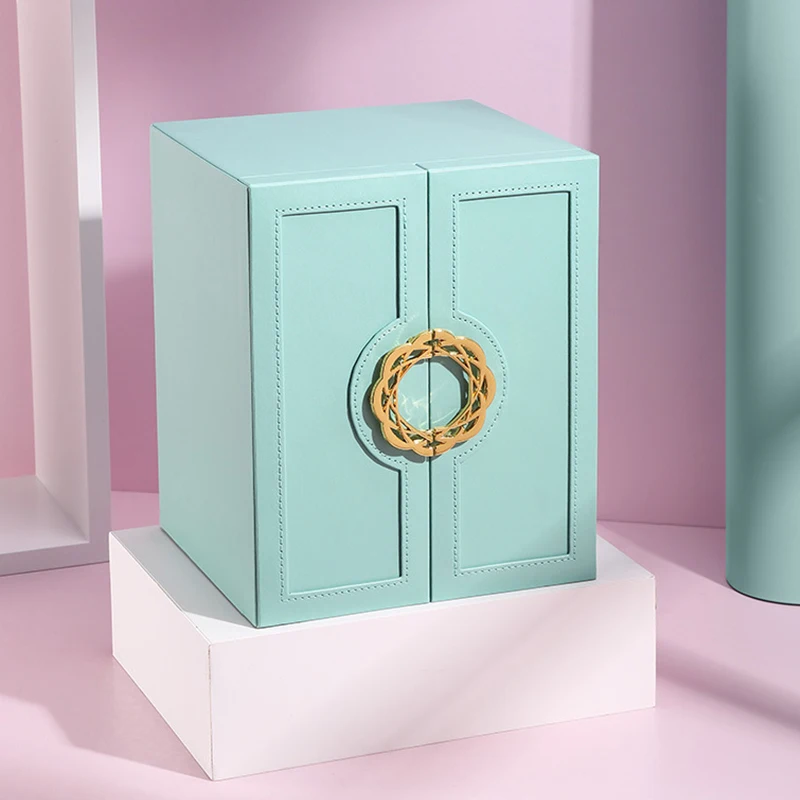 Green Pu Leather Multi-Function Three-Tier Jewelry Storage Jewelry Box Earring Storage Show Cases With Drawers