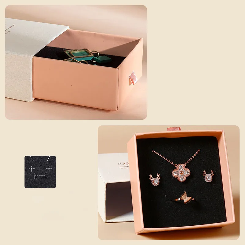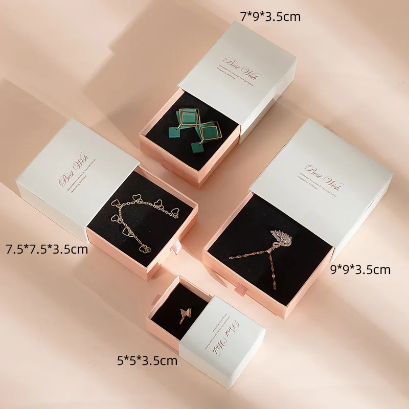 Logo Printed White Pink Necklace Jewelry Ring Earring Bracelet Jewellery Box With Sliding Drawer Custom