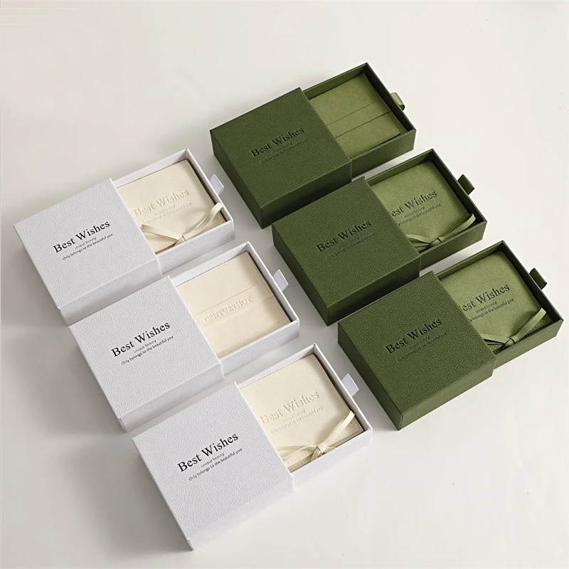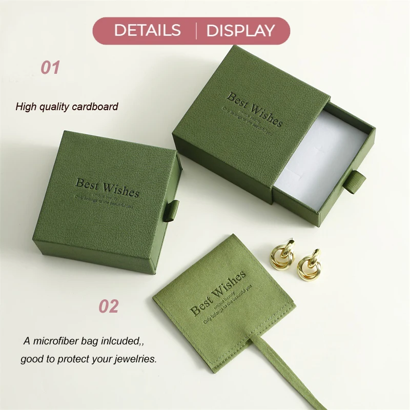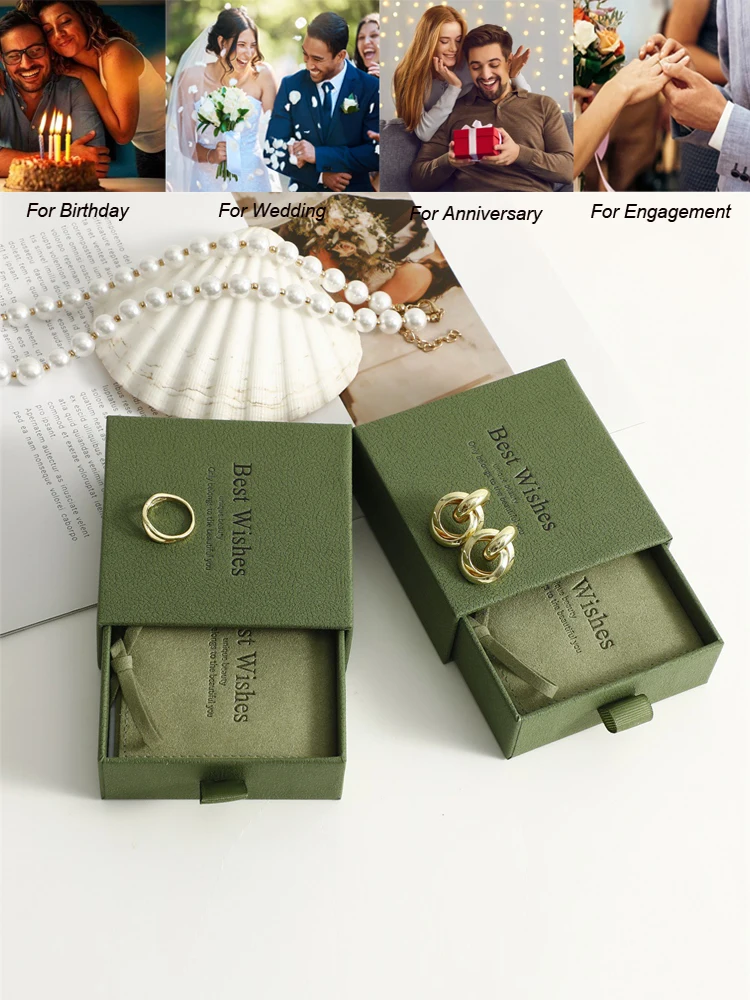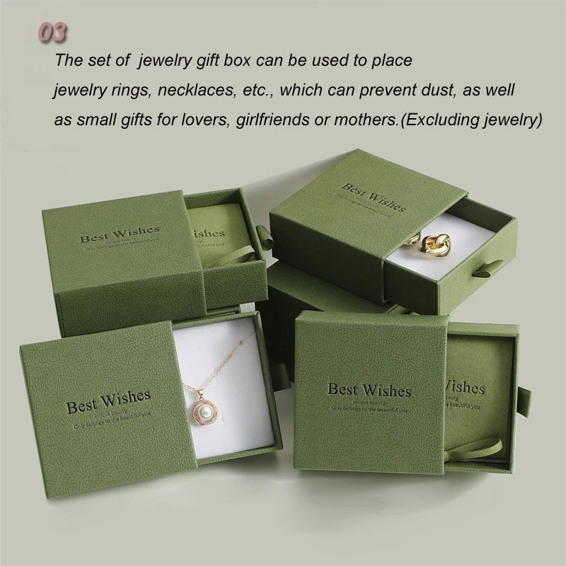 Luxury Dark Green Jewelry Box Elegant Drawer-Style Gift Packaging for Rings & Necklaces