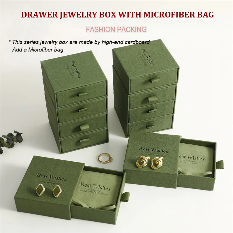 Ins Style Drawer Jewelry Box with Premium Microfiber Pouch, Elegant Paper Storage for Rings & Necklaces