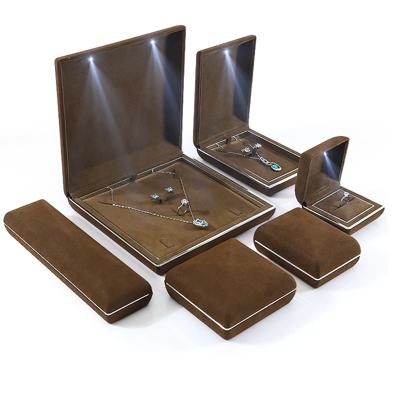 Item name | Luxury LED Light Suede Ring Pendant Jewellery Box Wholesale Microfiber Jewelry Necklace Bracelet Gift Display Storage Case |