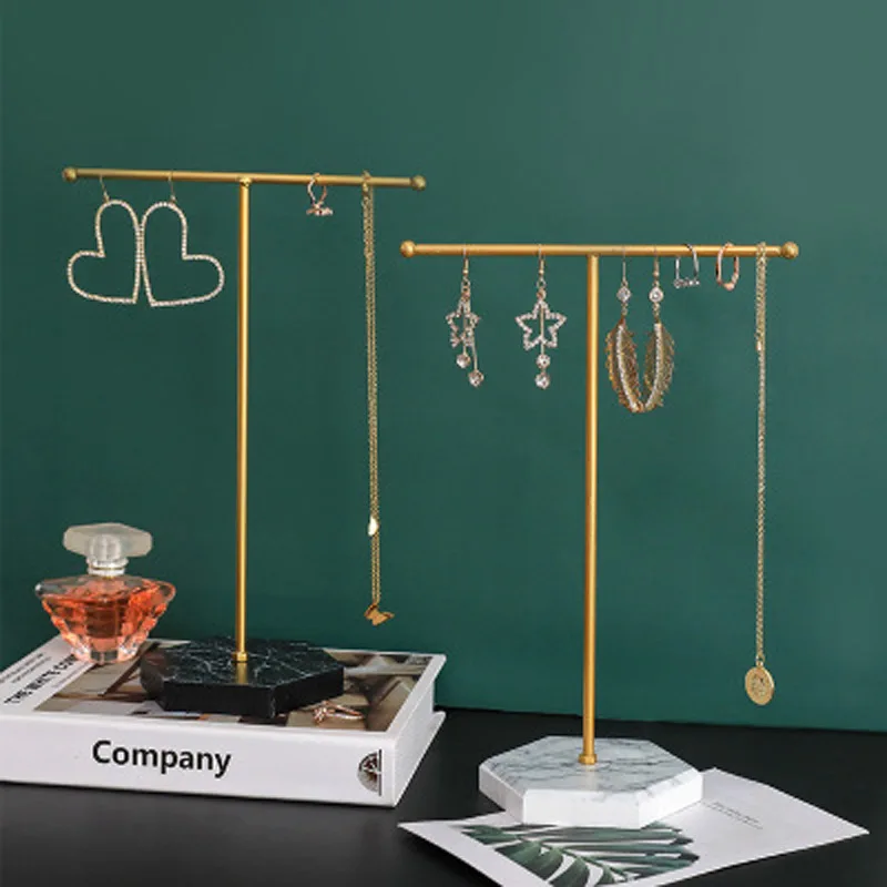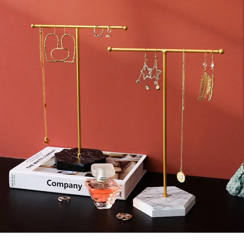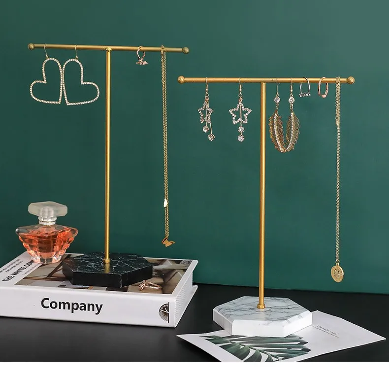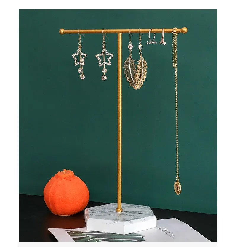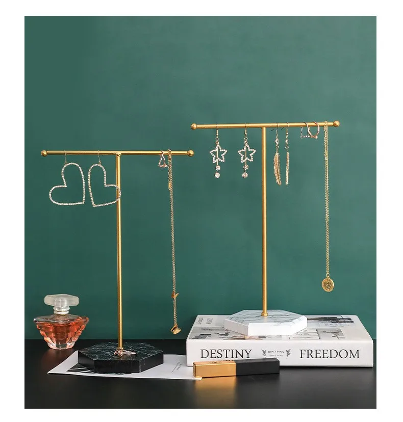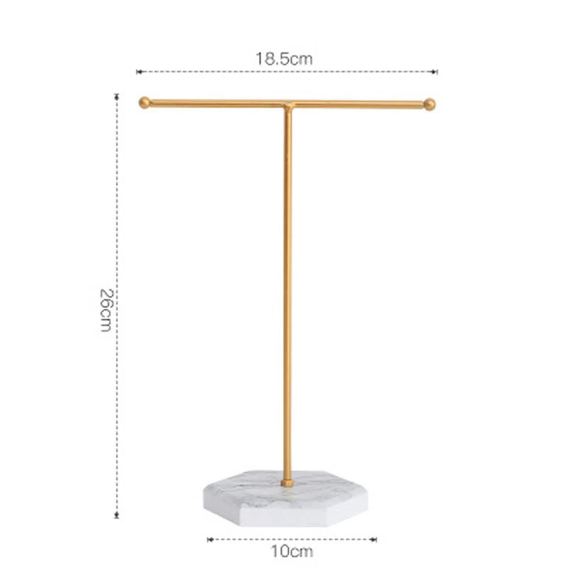 Metal T-Shaped Wooden Base Jewelry Necklace Earrings Display Showcase Storage Rack Stand for Home Table Store Shop Counter Top