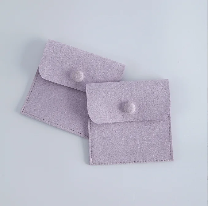 Purple Microfiber Custom Printed Jewelry Pouches with Button for Earrings Jewellery Packing Pouch Display Gift Pouch
