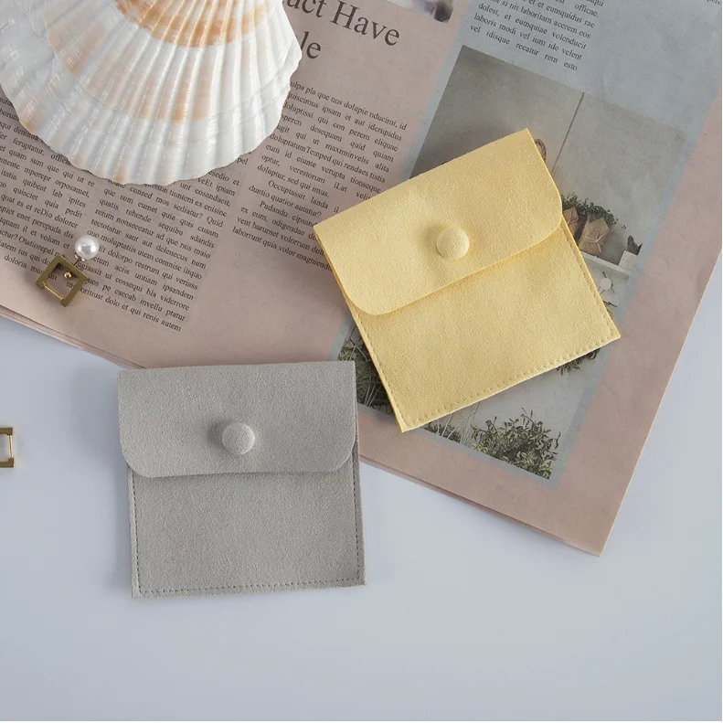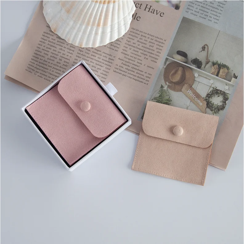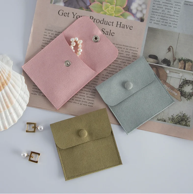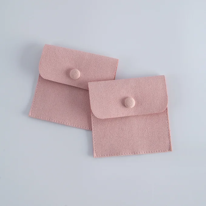 Boyang Custom Logo Jewellery Package Microfiber Snap Button Pouch Bags Jewelry Earrings Necklace Pouch Gift Bag With Insert Card