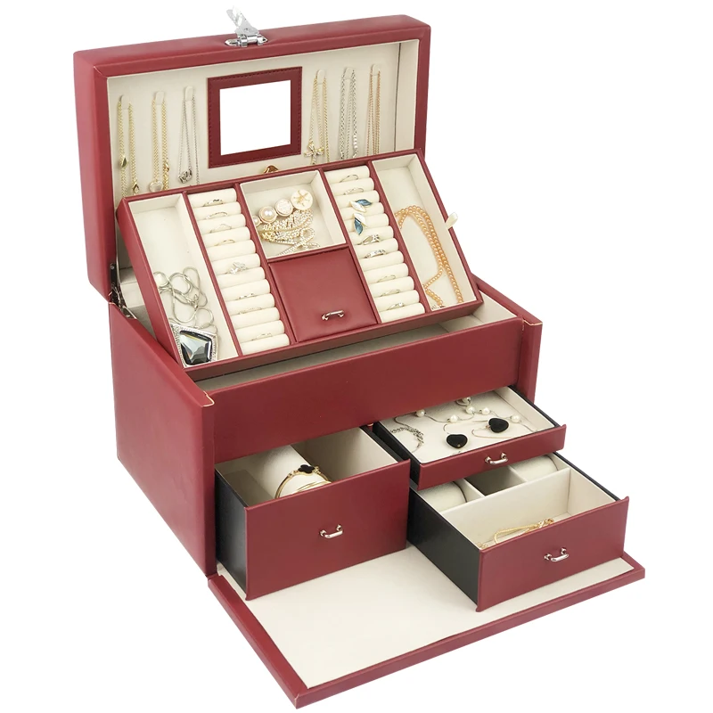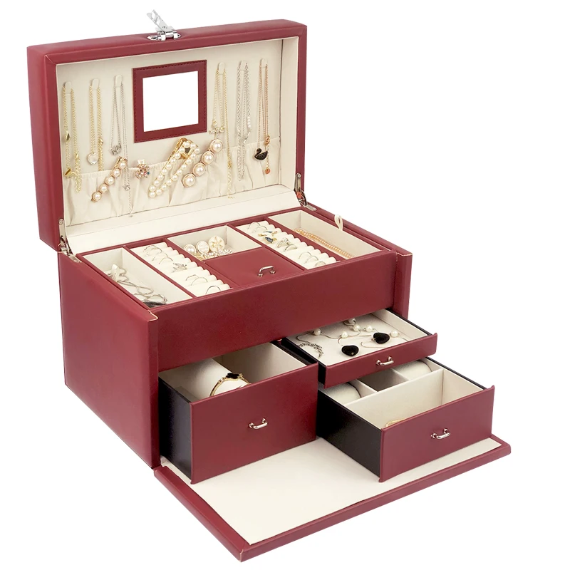 New Design Large High Quality Leather Watch Bracelet Earring Ring Jewelry Ornaments Storage Organizer Case with Lock