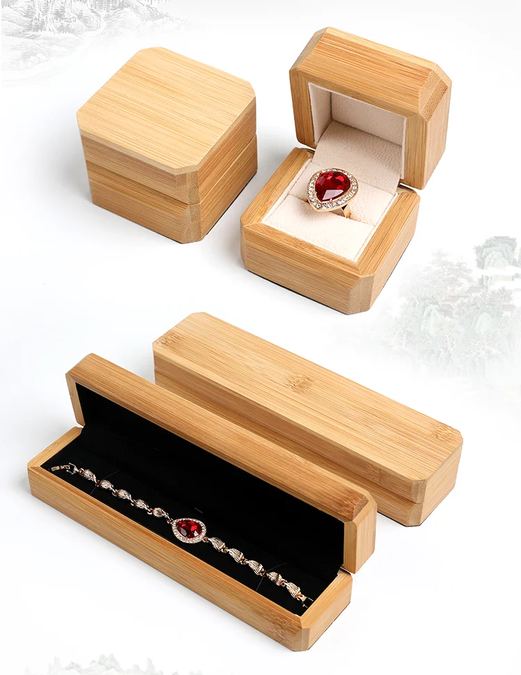 Vintage High Quality Luxury Solid Bamboo Jewelry Wooden Ring Boxes