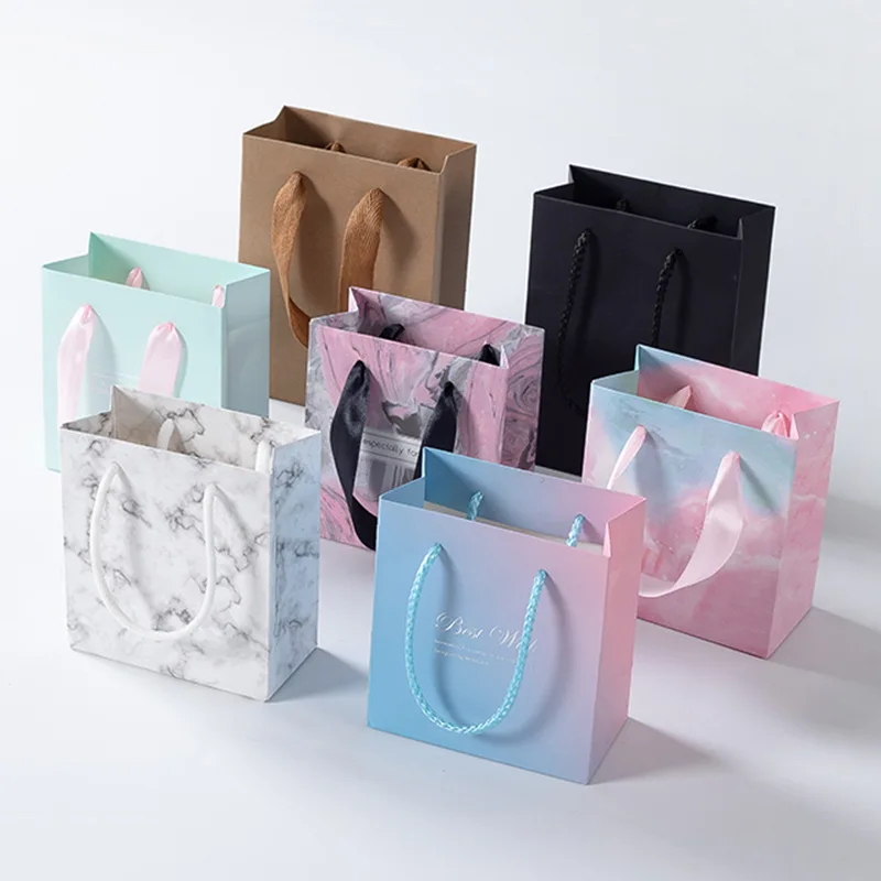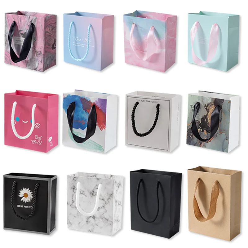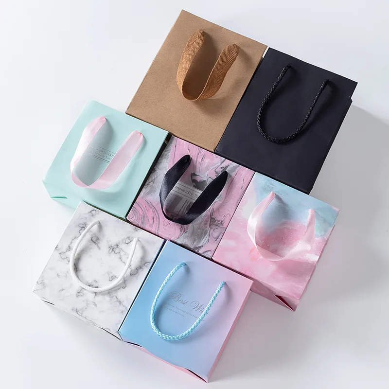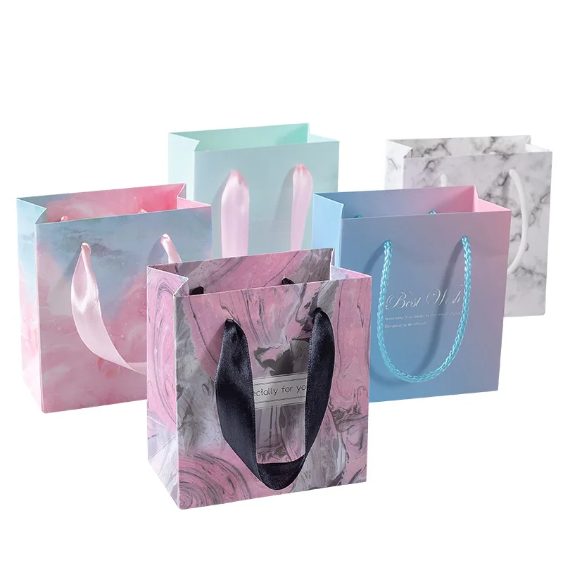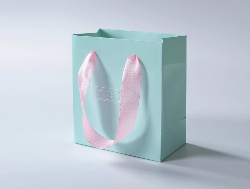 Wholesale Custom Color Recyclable Paper Jewelry Gift Packaging Bags with Ribbon Lamination Custom Logo