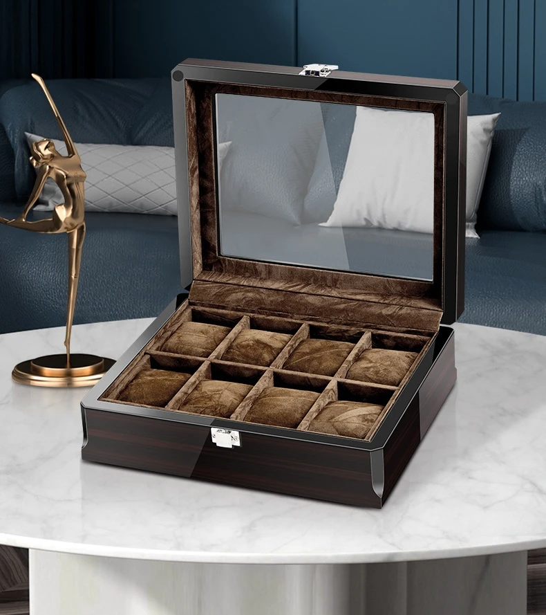 Wholesale Custom Luxury Lacquer Finished Wooden Watch Display Packaging Storage Box Case