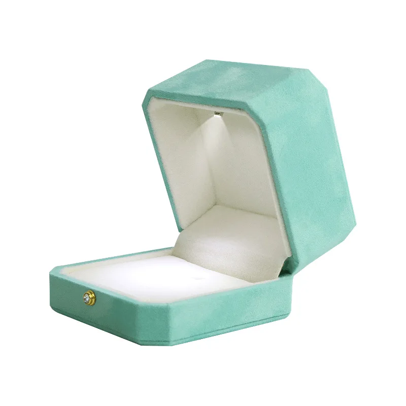 Wholesale Custom Octagonal Velvet Jewellery Packing Case For Ring Pendant Necklace Led Light Jewelry Packaging Box