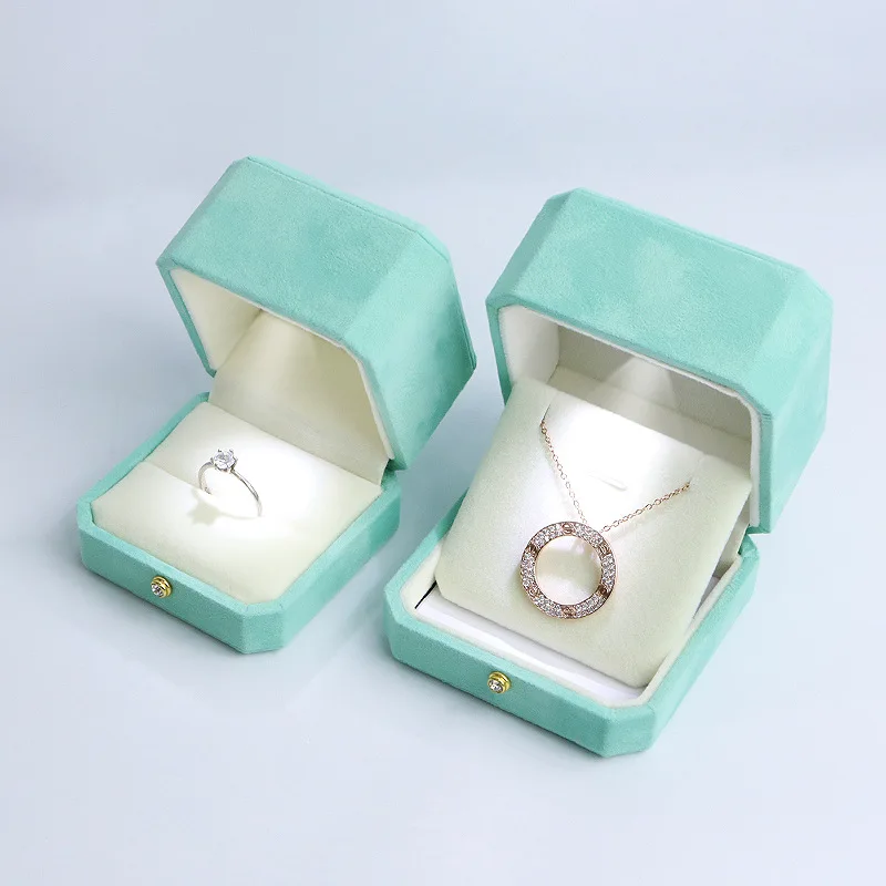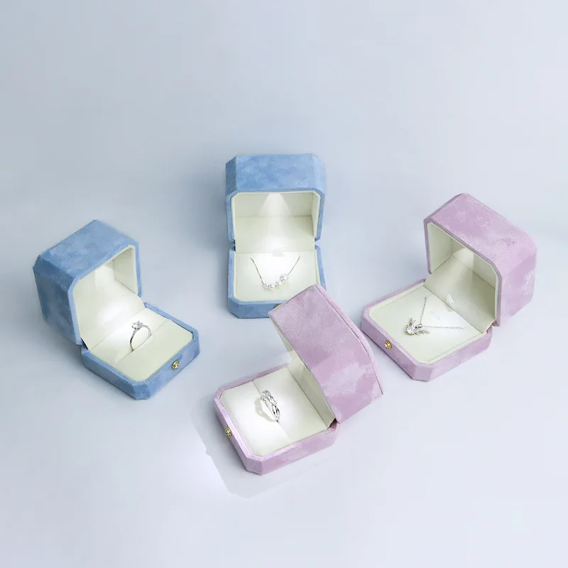 Wholesale Custom Octagonal Velvet Jewellery Packing Case for Ring Pendant Necklace Led Light Jewelry Packaging Box