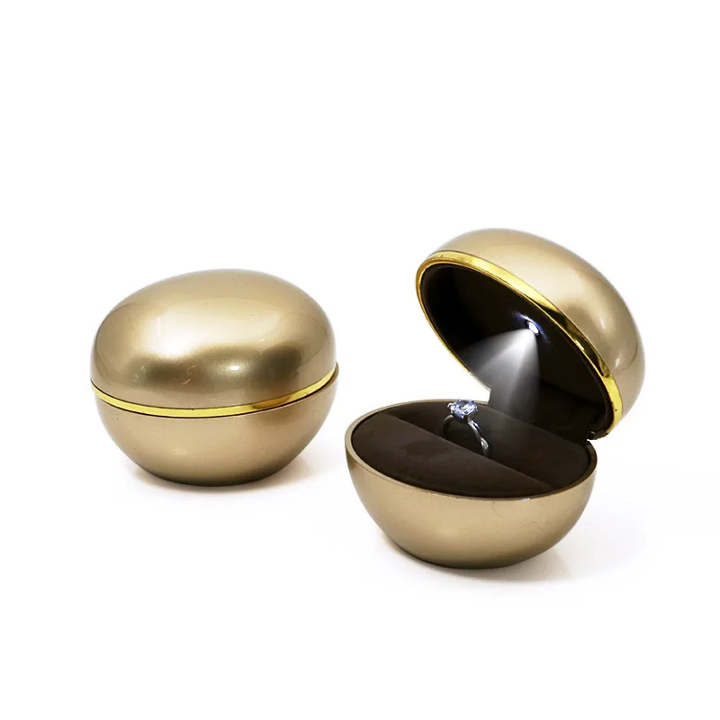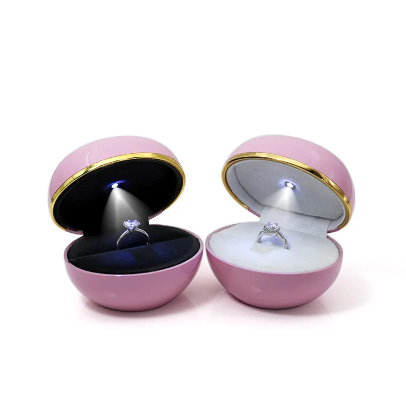 Wholesale Good Quality Plastic Lacquer Coating Round Egg Shape Wedding Ring Jewellery Box with Led Light