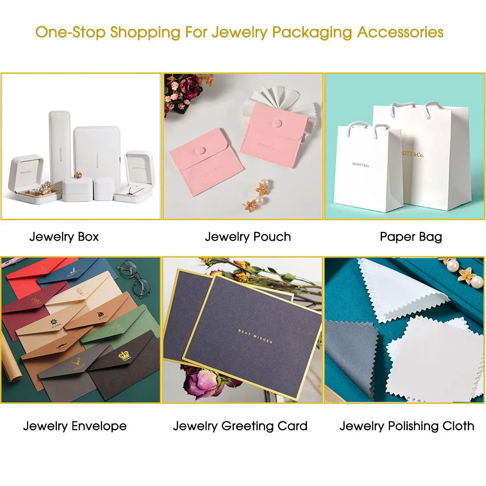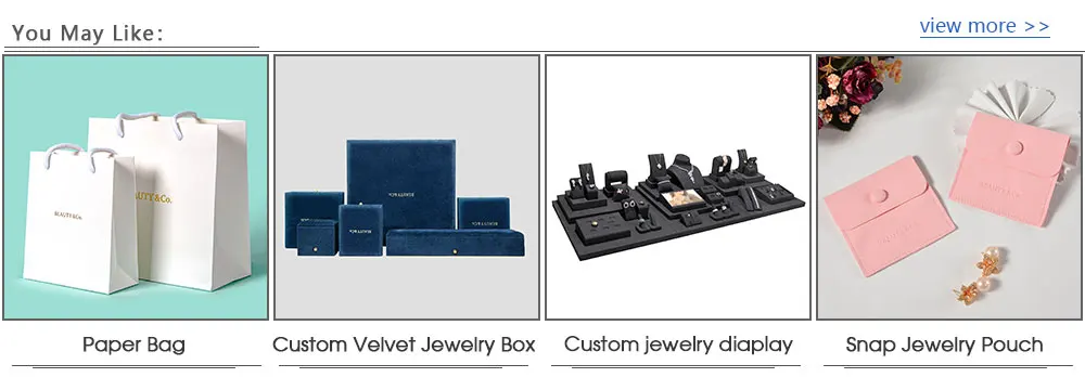 Custom -1 | 1.Customizable paper jewelry boxes, plastic jewelry boxes, wooden jewelry boxes, metal jewelry boxes, LED jewelry boxes and other jewelry boxes. 2.Customizable various jewelry pouch including microfiber jewelry bags, velvet jewelry pouch, storage bags and other storage bags. 3.Customizable Various types of jewelry store jewelry display. 4.Customizable all kinds of paper bag. 5.Customizable greeting cards. 6.Customizable silver polishing cloth and so on. Provide one-stop design, customization, production, and procurement services for jewelry accessories such as jewelry boxes, jewelry bags, jewelry display , paper bag, greeting cards, and silver polishing cloth in jewelry stores, saving you from running around to find different products. Save you a lot of money and time. | |