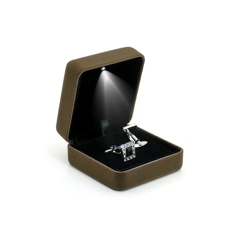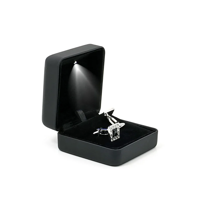 Wholesale Custom Logo Luxury Men’s Buttons Jewelry Gift Packaging Case Led Light Cufflinks Box