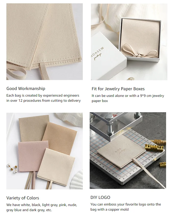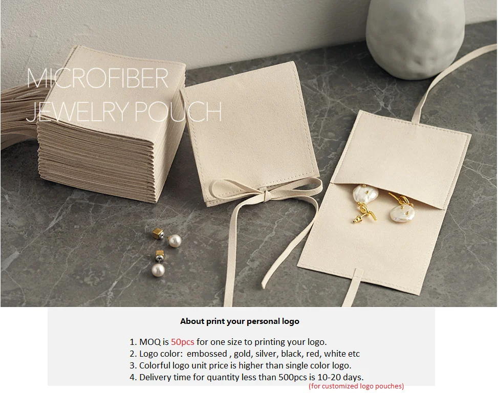 Custom Cream Jewelry Pouches Velvet Customize OEM Logo Draw String Packaging Jewellery Pouch